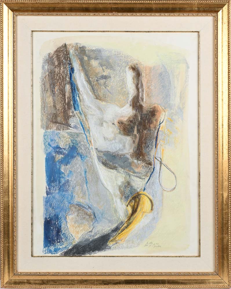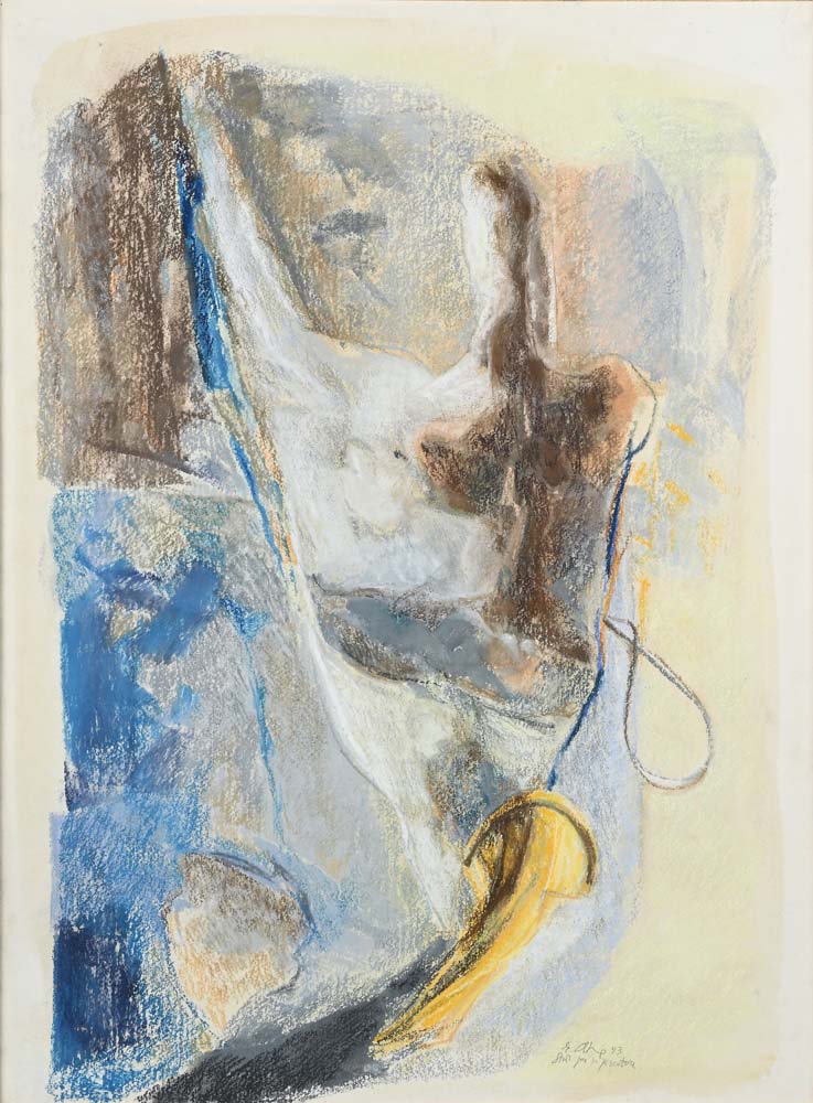 Studio per un pescatore Firma, data e titolo in basso a destra "E. Calabria '93, Studio per un pescatore" Pastelli cerosi su carta applicata su tela cm 77x58 - in cornice cm 96x77 Certificato di archiviazione rilasciato dall'Archivio Ennio Calabria a cura di Rita Pedonesi e firmato da Ennio Calabria