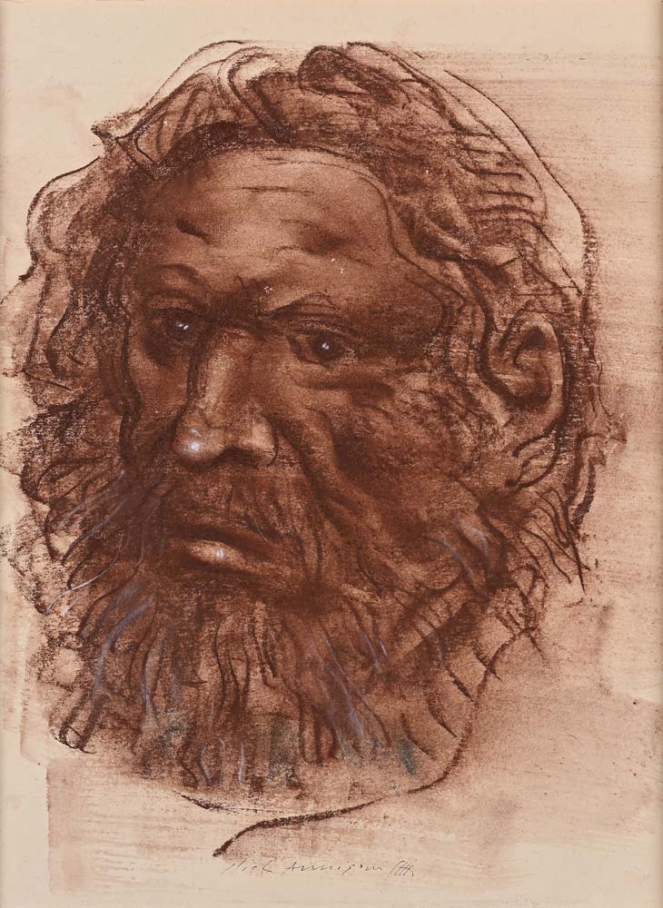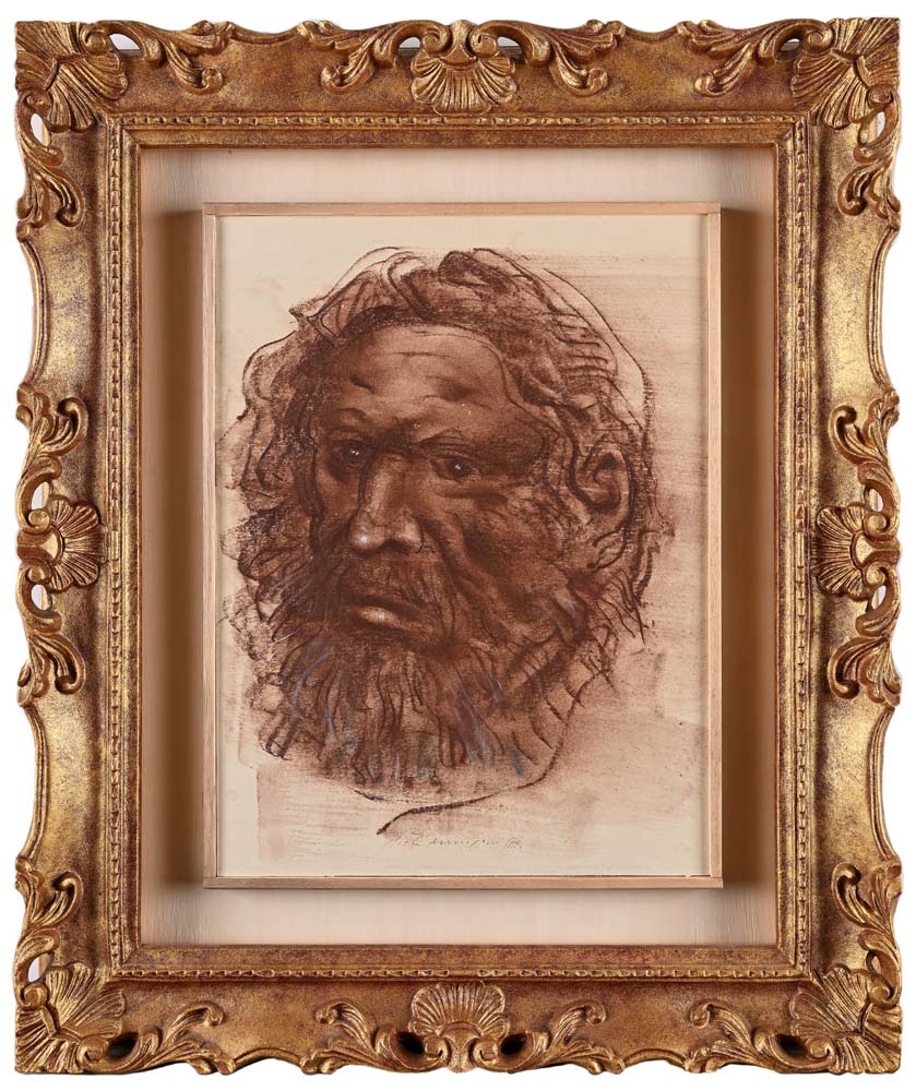 Ritratto di uomo Firma in basso al centro "Pietro Annigoni" e monogramma Sanguigna su carta cm 40x30 - in cornice cm 63x52