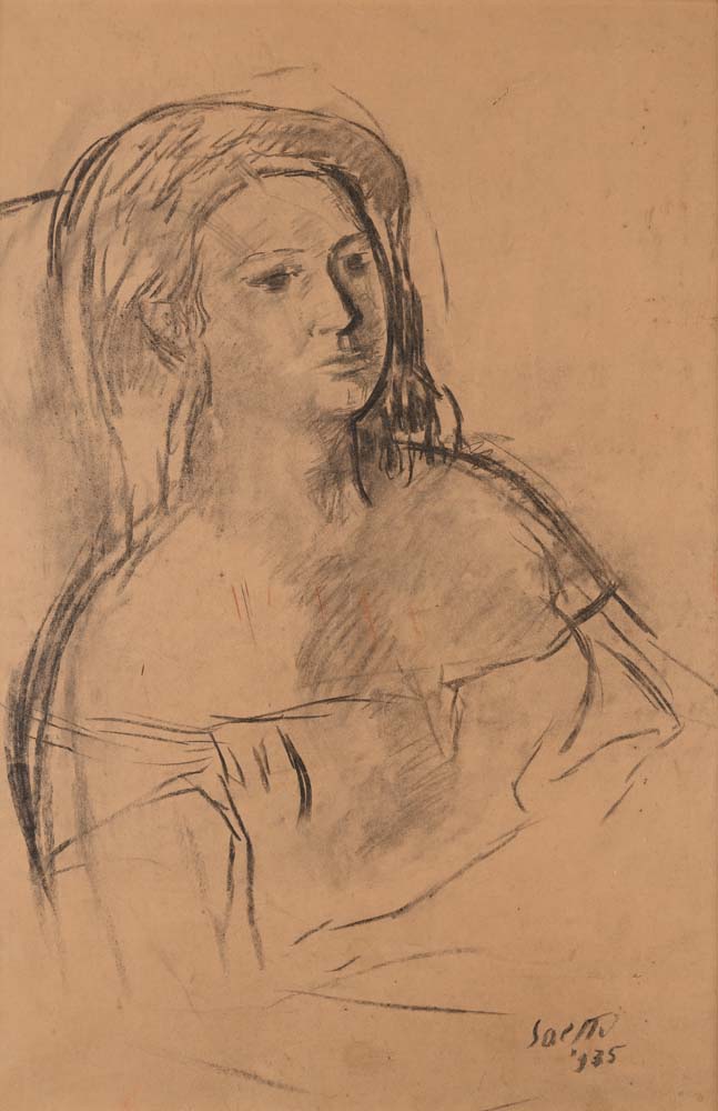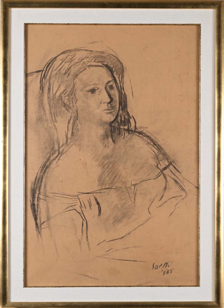 Ritratto di donna 1935 Firma e data in basso a destra "Saetti '935" Carboncino su carta applicata su tela cm 100x70 - in cornice cm 105x75
