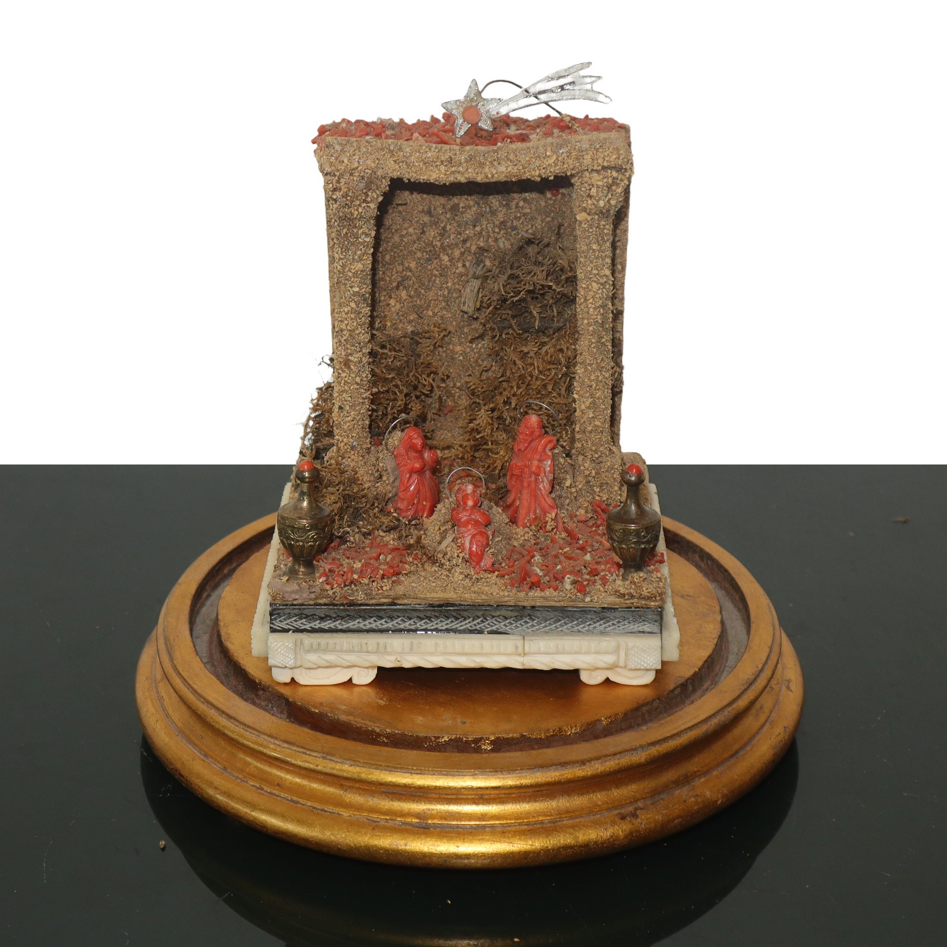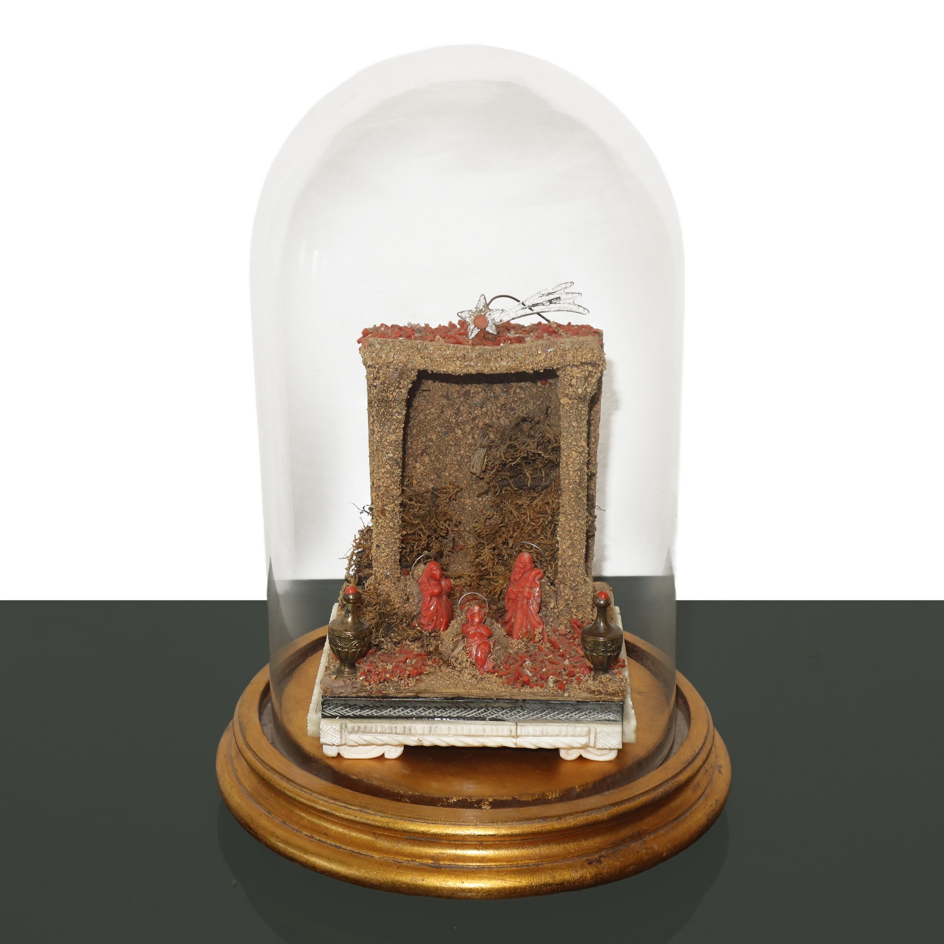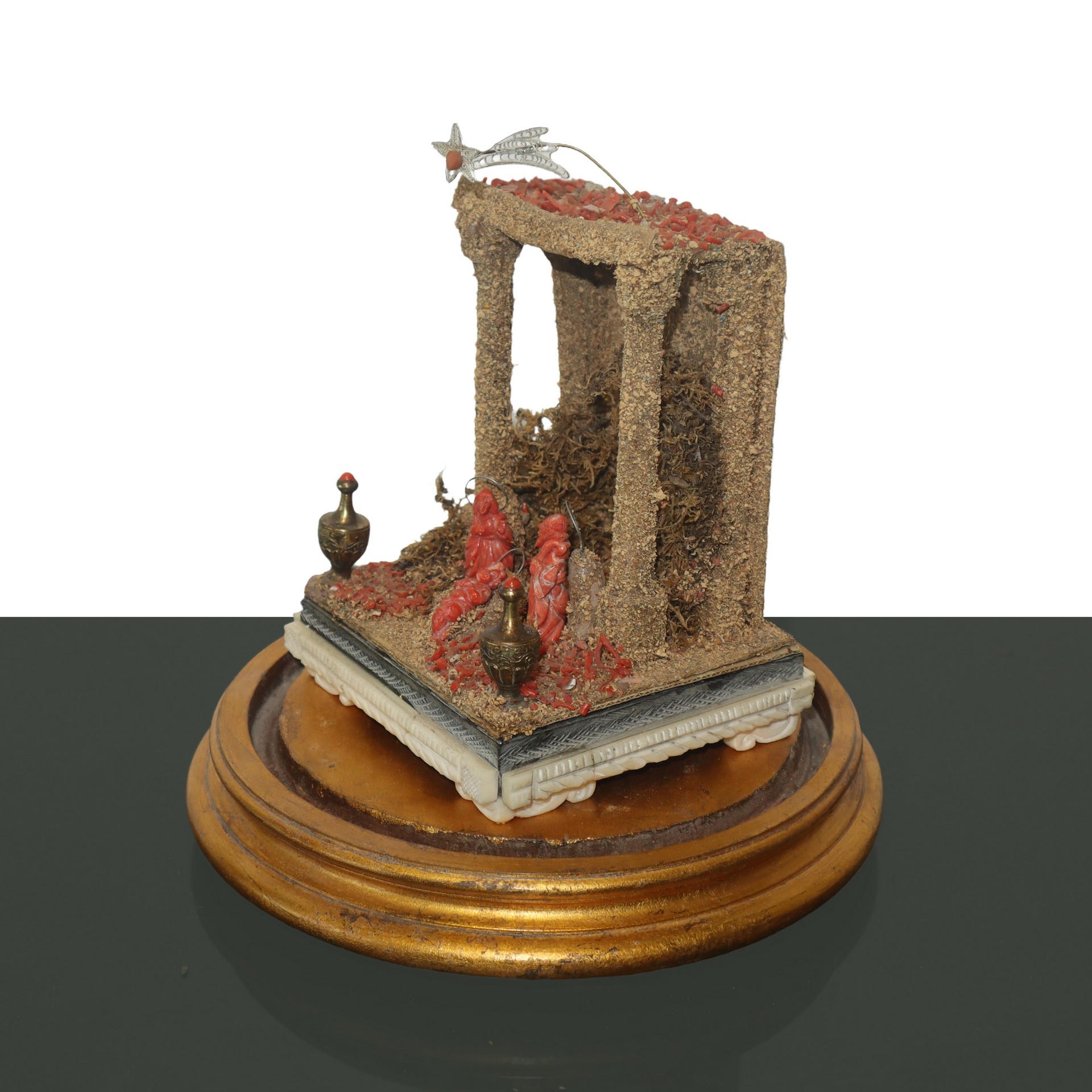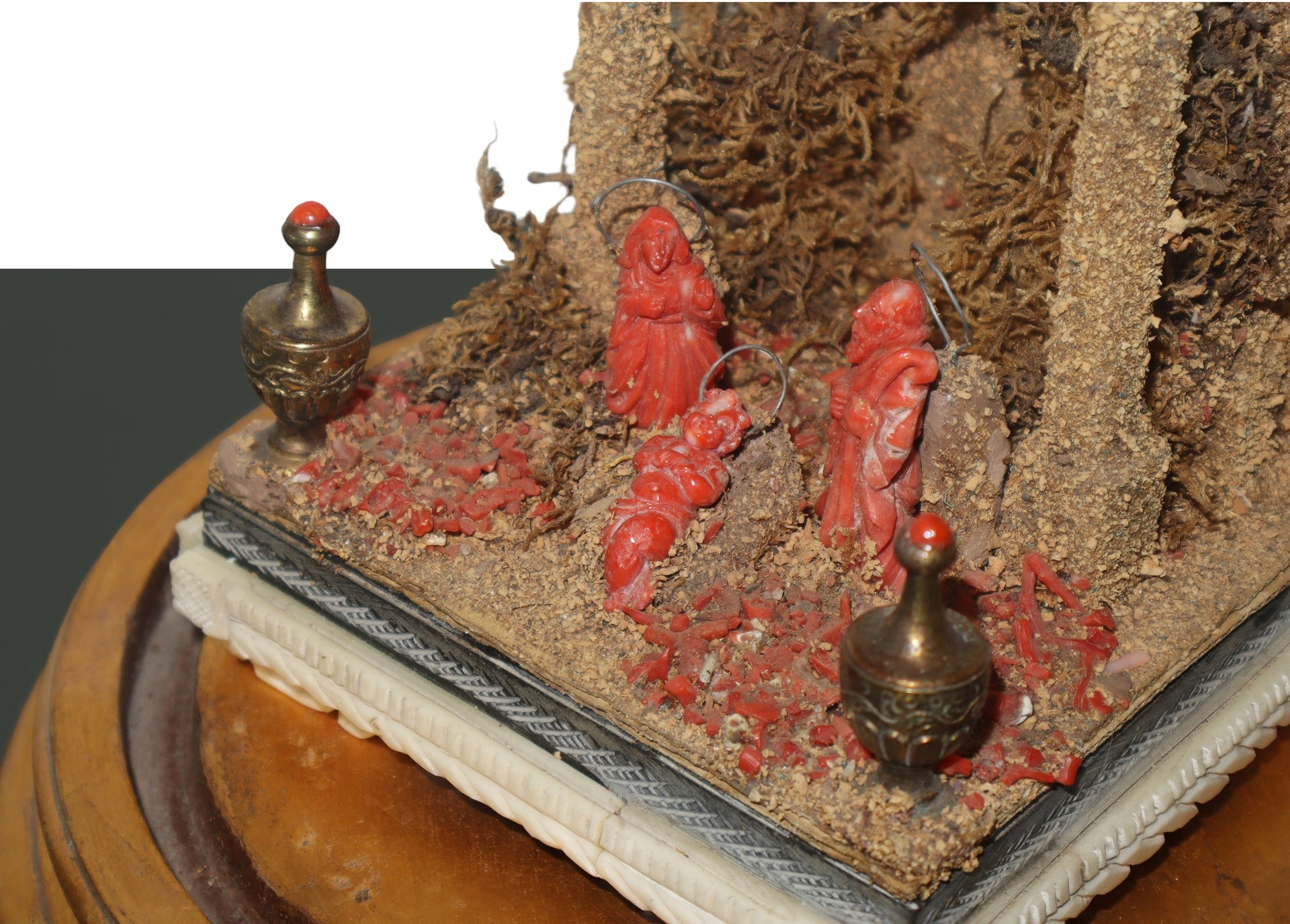 Lotto 5 | Presepe in corallo rosso Torre del Greco in teca di vetro, primi 20° secolo