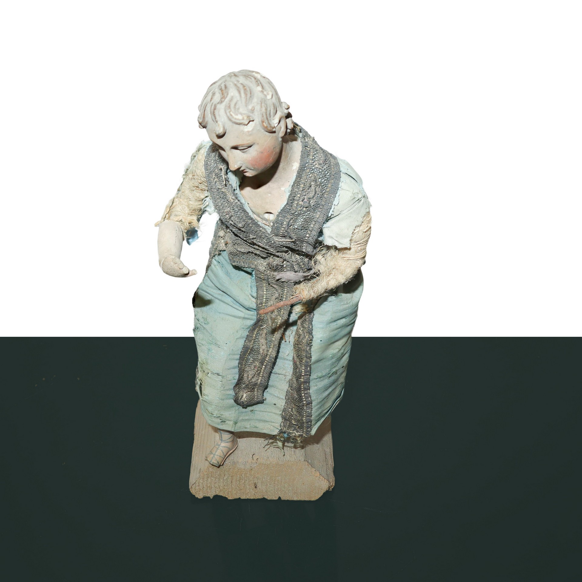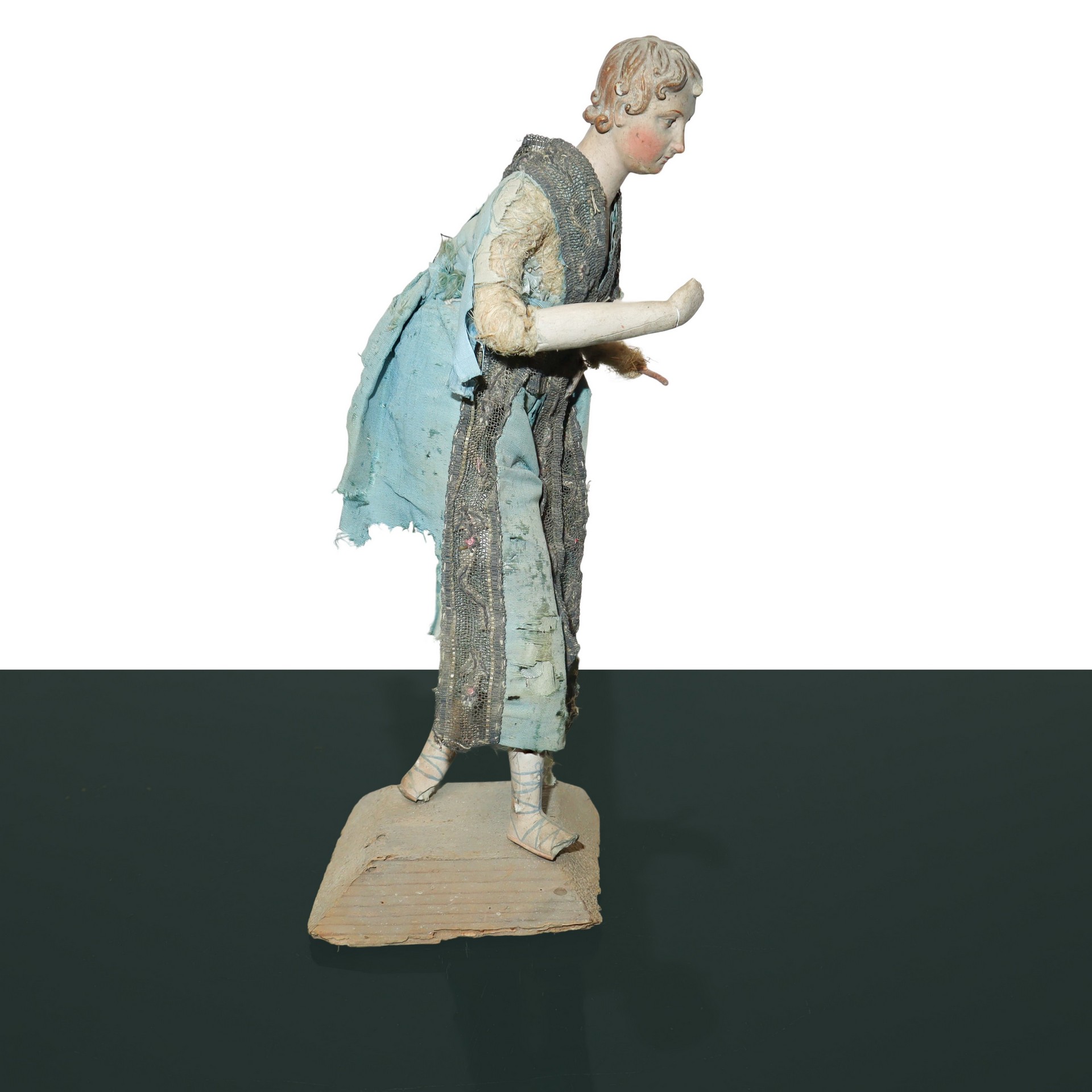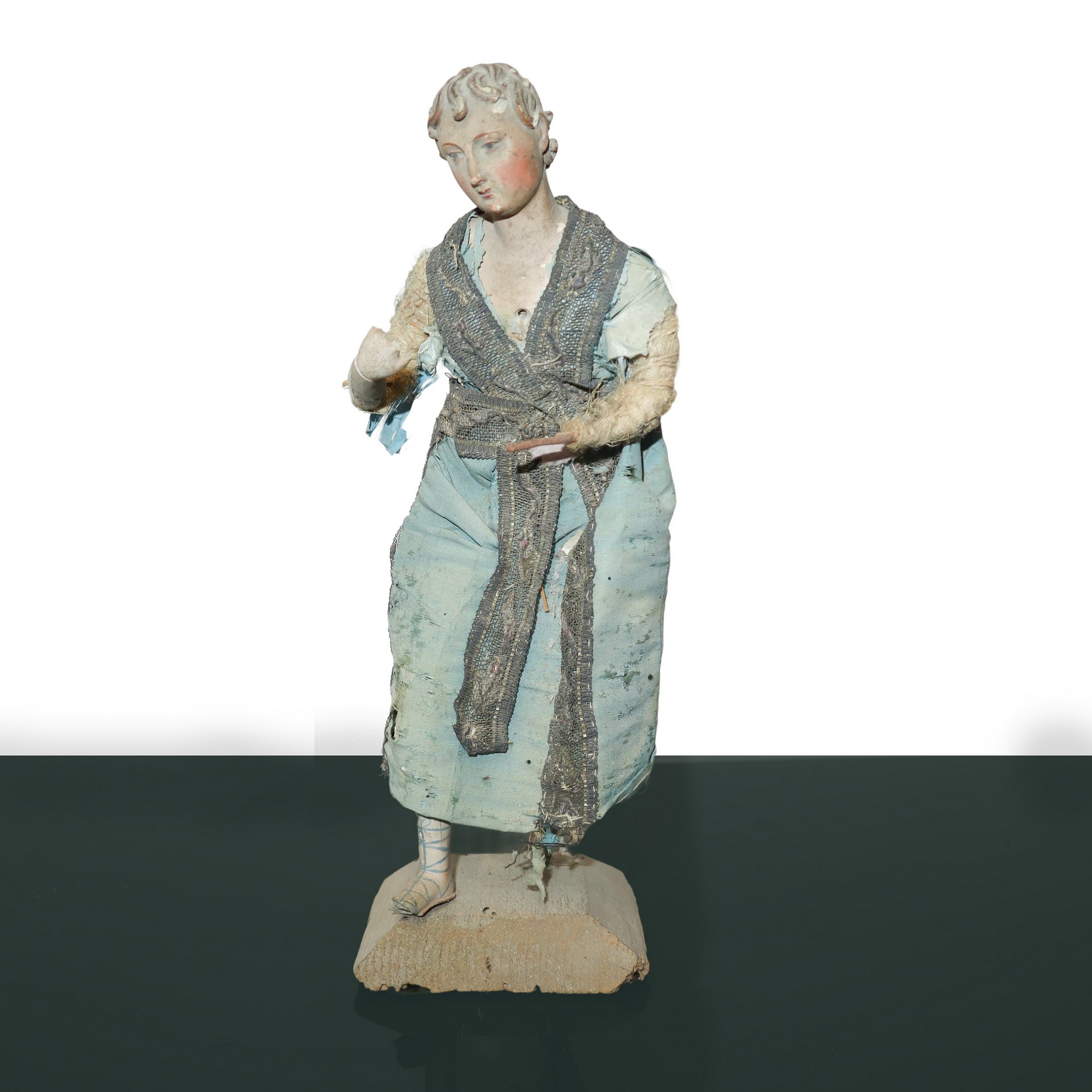 N°3 Statue di pastori genovesi con busto mani e piedi in terracotta, occhi dipini e abiti in tessuto e crine , 19° secolo