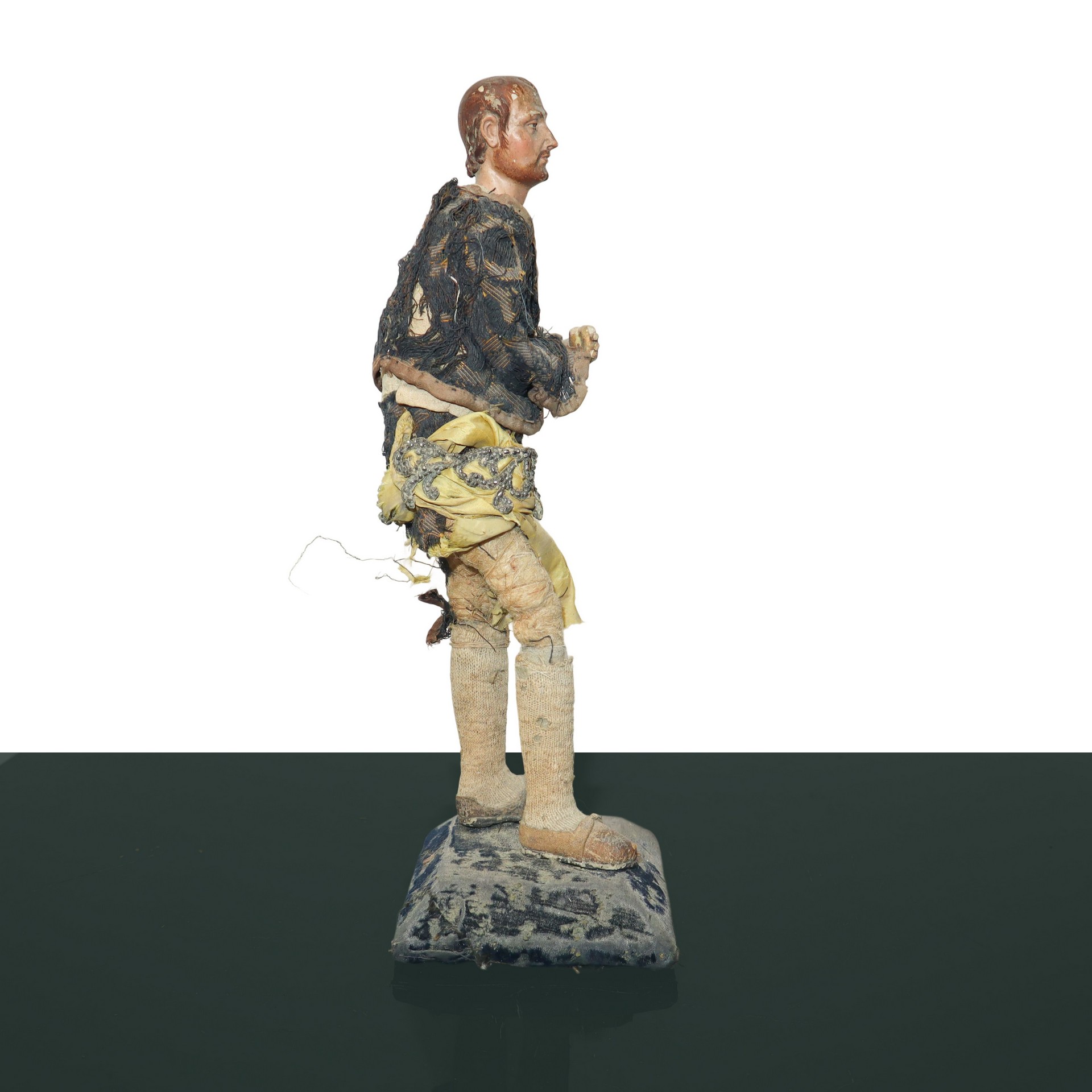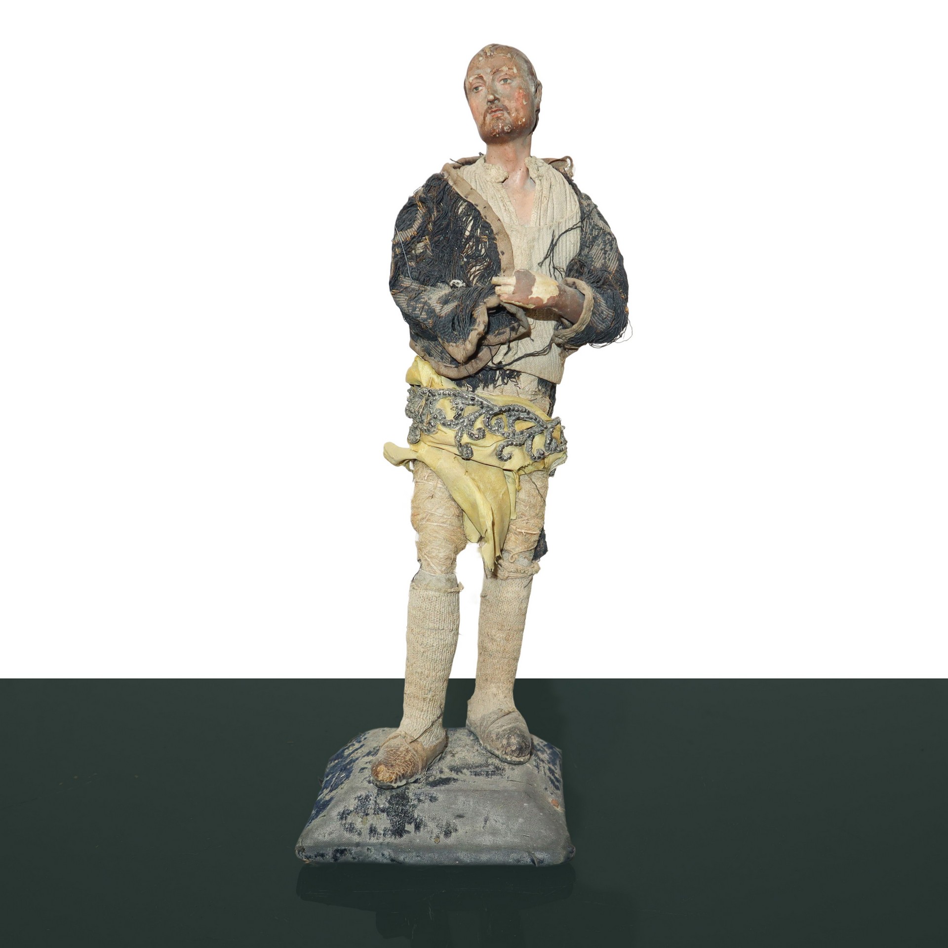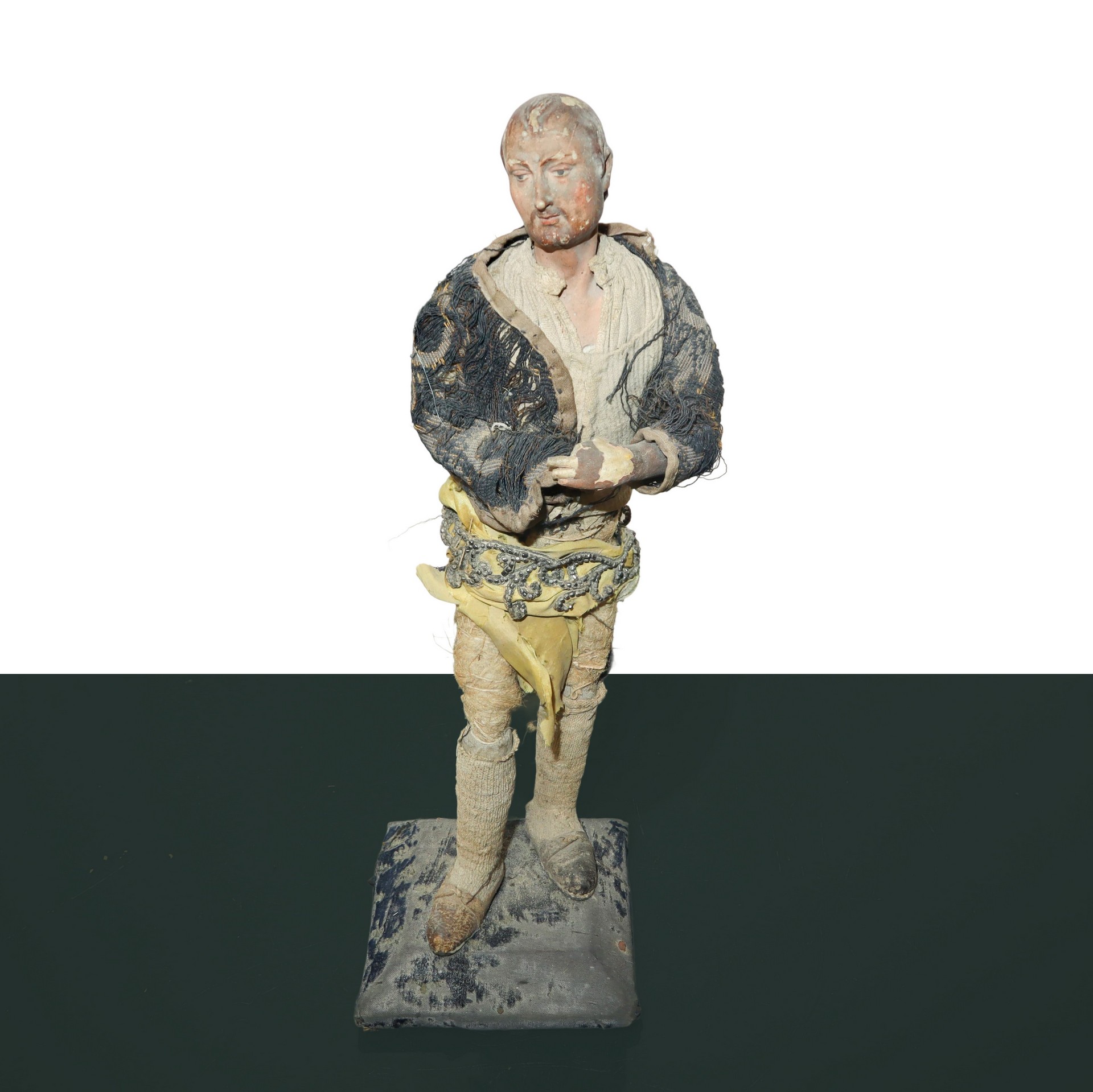 N°3 Statue di pastori genovesi con busto mani e piedi in terracotta, occhi dipini e abiti in tessuto e crine , 19° secolo