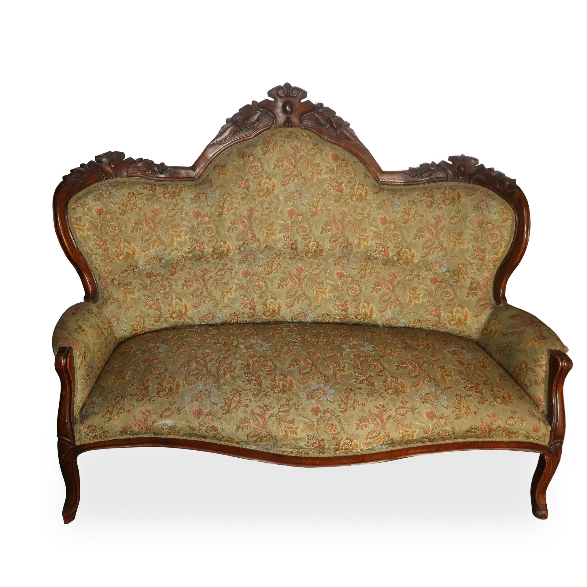 Lotto 21 | Divano Luigi Filippo in legno di noce con spalliera intagliata a foglie, 19° secolo