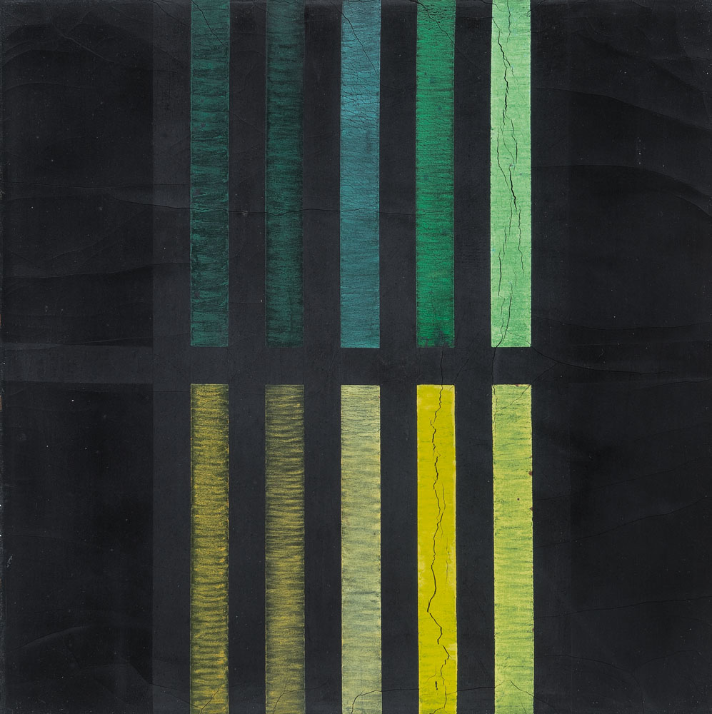 supporto gomma cm. 51x51, firme e anni al retro, etichetta e timbri con dicitura: proprietà del Gruppo '73 Firenze al retro.