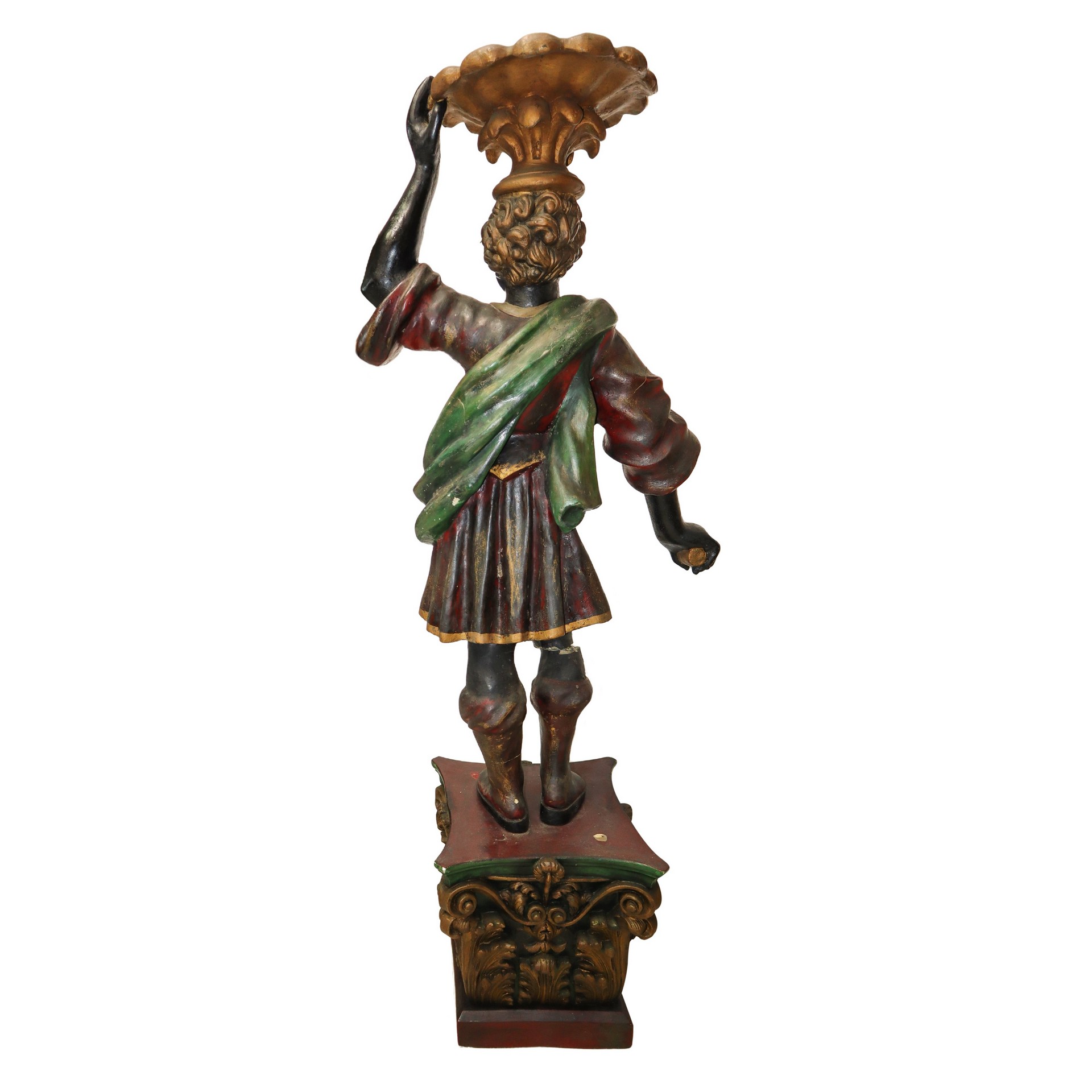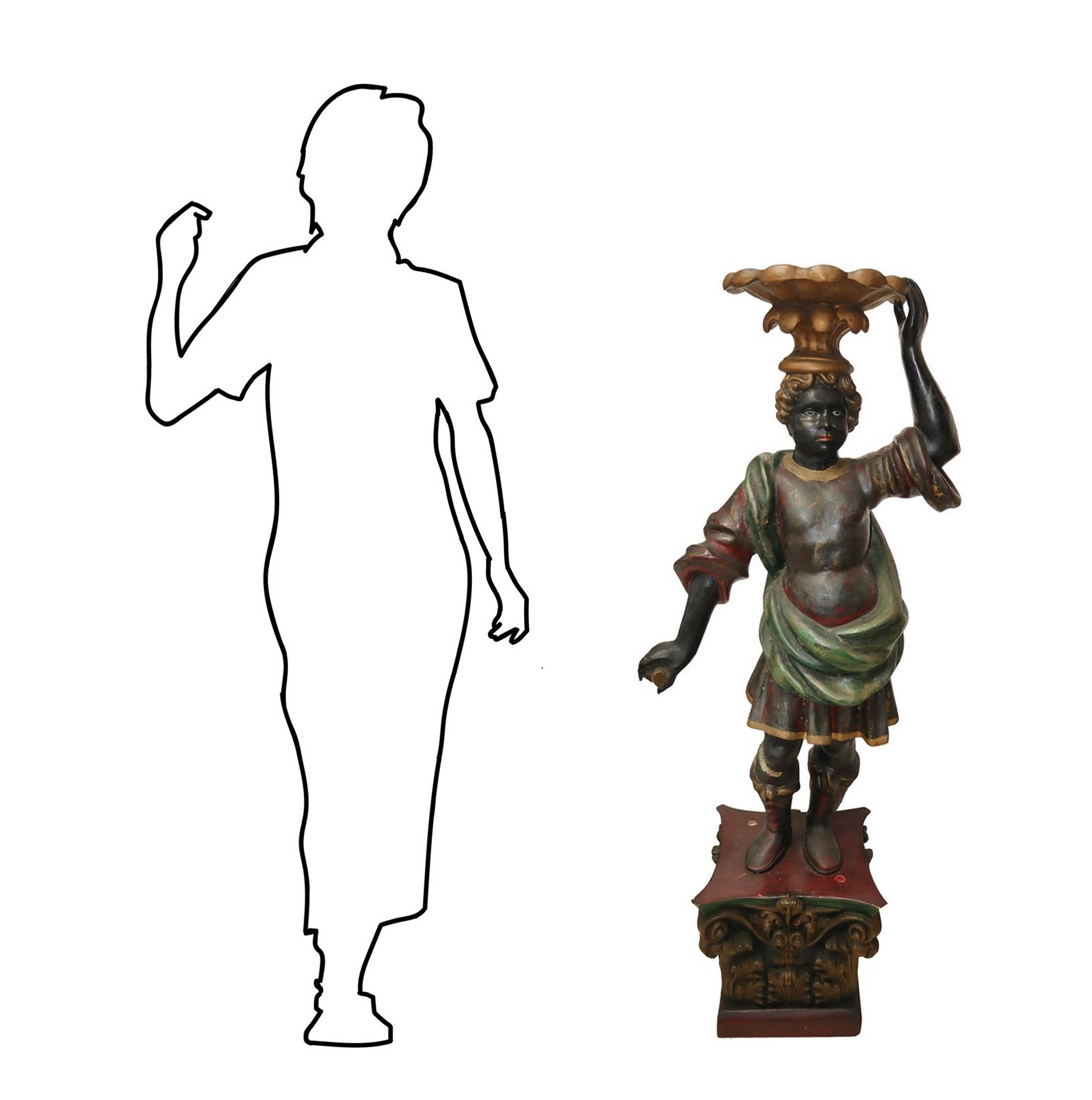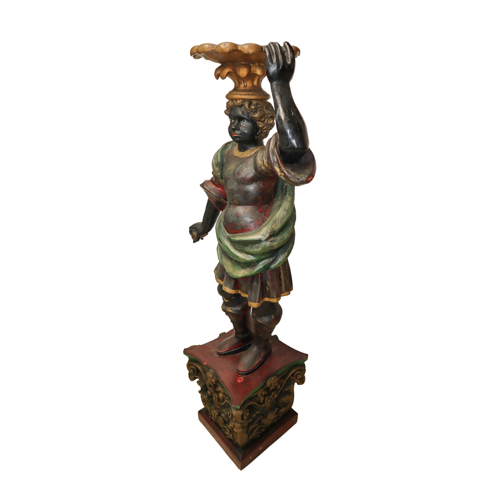 Moro veneziano in legno policromo H cm 135x54 Segni d'uso. Presente rottura in una gamba.