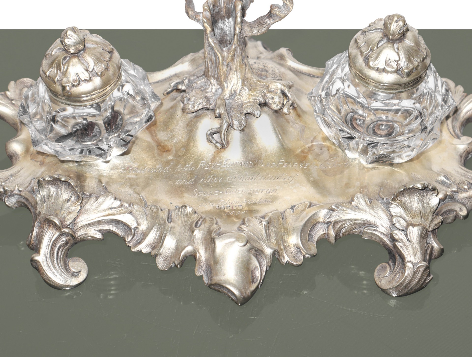 Calamaio in sheffield con iscrizione incisa, 1856 cm 31 Data Incisa, dotato di certificato di autenticità