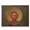 Icona russa con riza in rame cesellato e sbalzato raffigurante San Pantaleone, 19th/20° secolo h cm 30x26
