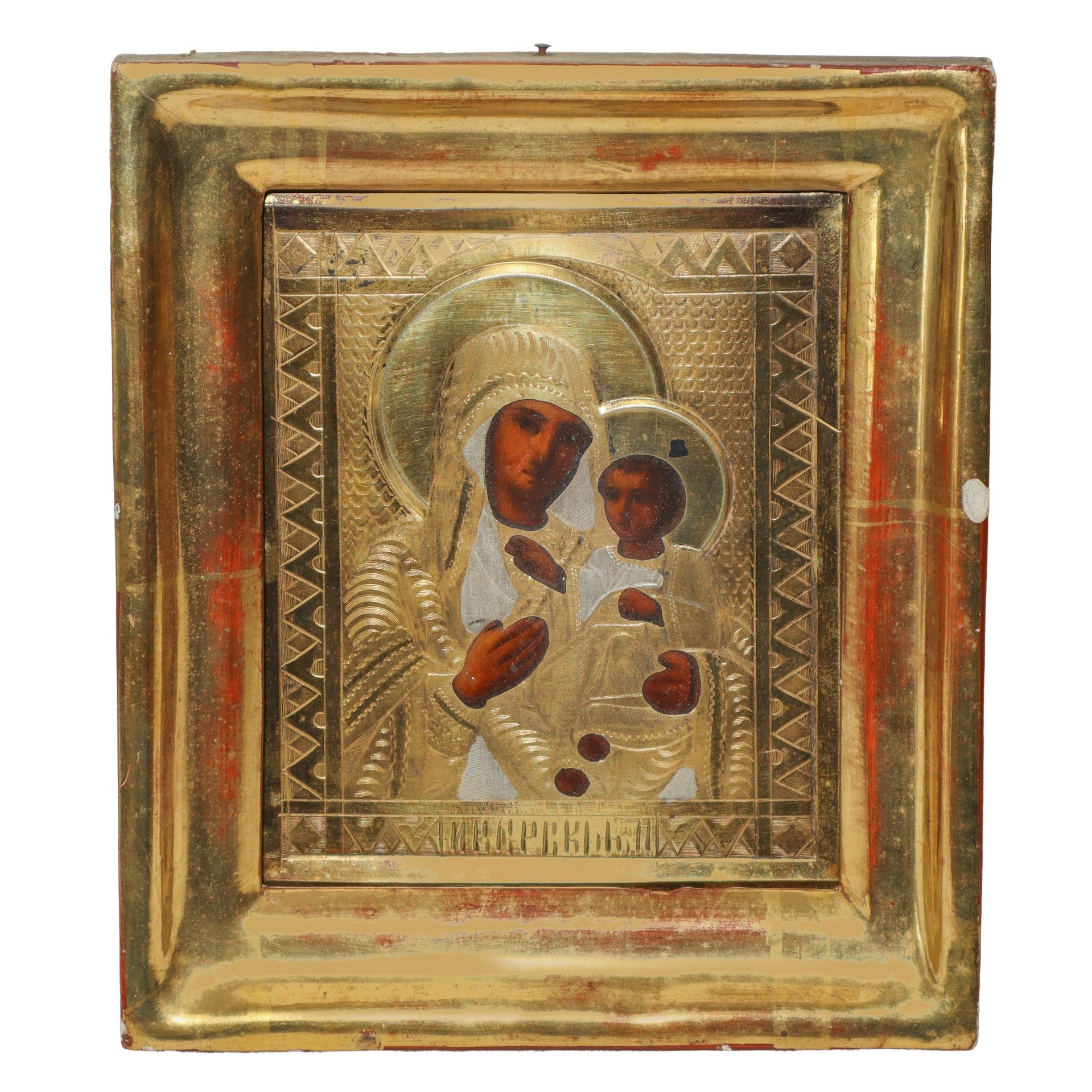 Lotto 61 | Icona russa in teca con riza dorata e argentata