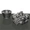 Porcellana argentata base a cesto con coperchio a trionfo di frutta H cm 17 Marchio Mip sotto coperchio