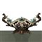 Lotto 203 | Grande ciatta centrotavola in maiolica con base in metallo e prese con raffigurazioni a grifone, fine 19° secolo