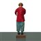 Personaggio presepiale in terracotta e legno con vesti in cotone, raso e passamaneria: uomo calvo con giacca rosa e foulard bianco, Naples 19° secolo