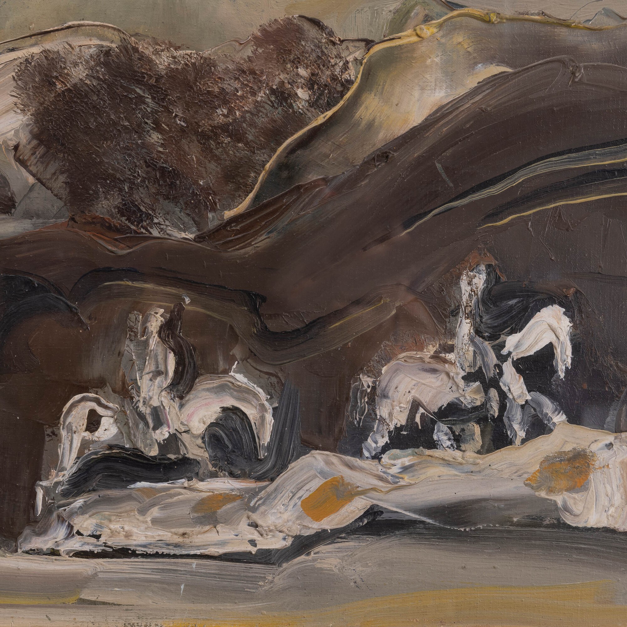 Paesaggio con montagne e cavalli e cavalieri, 1957 circa