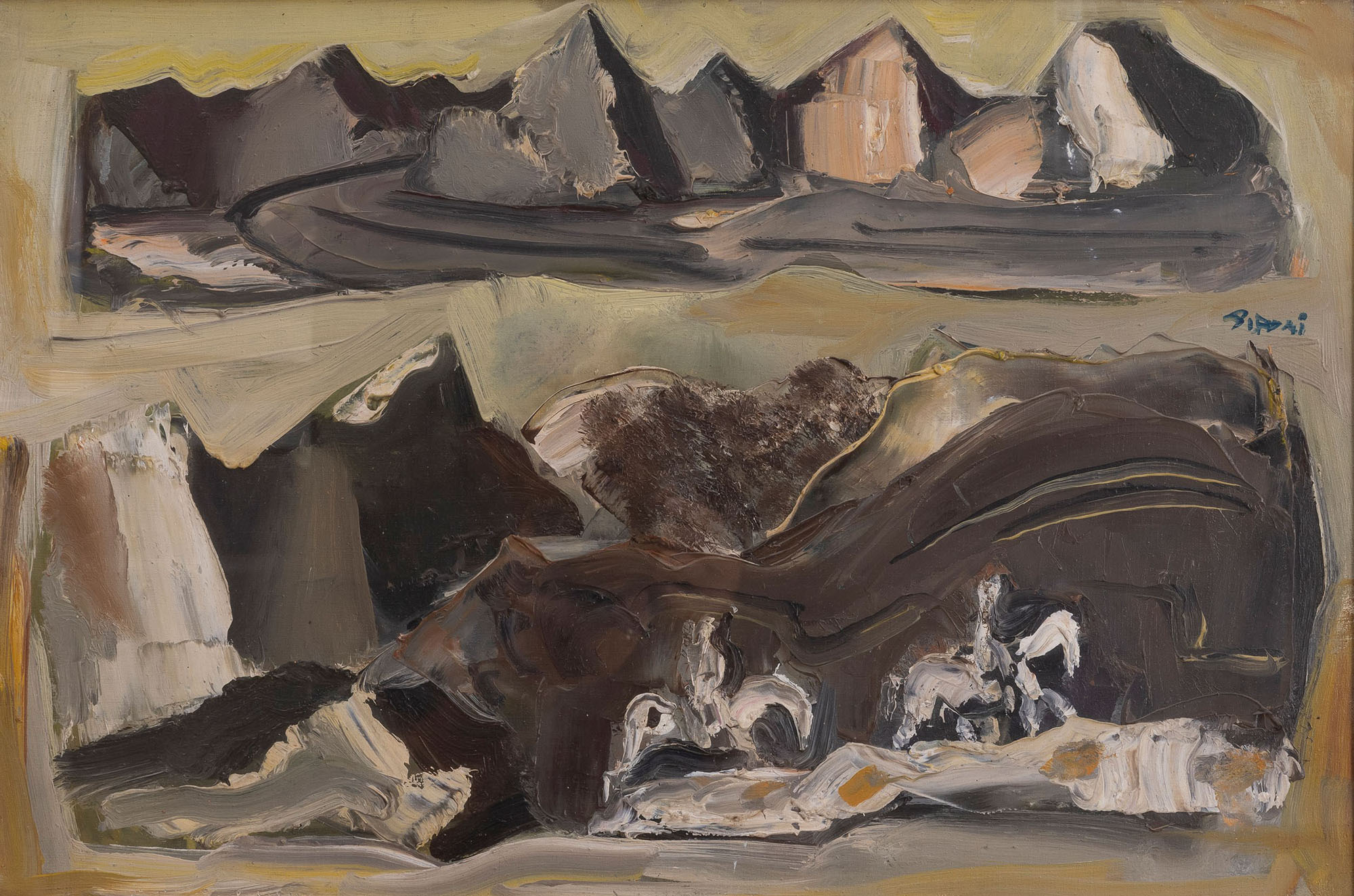 Mario Sironi 1885 Sassari-1961 Milano Paesaggio con montagne e cavalli e...