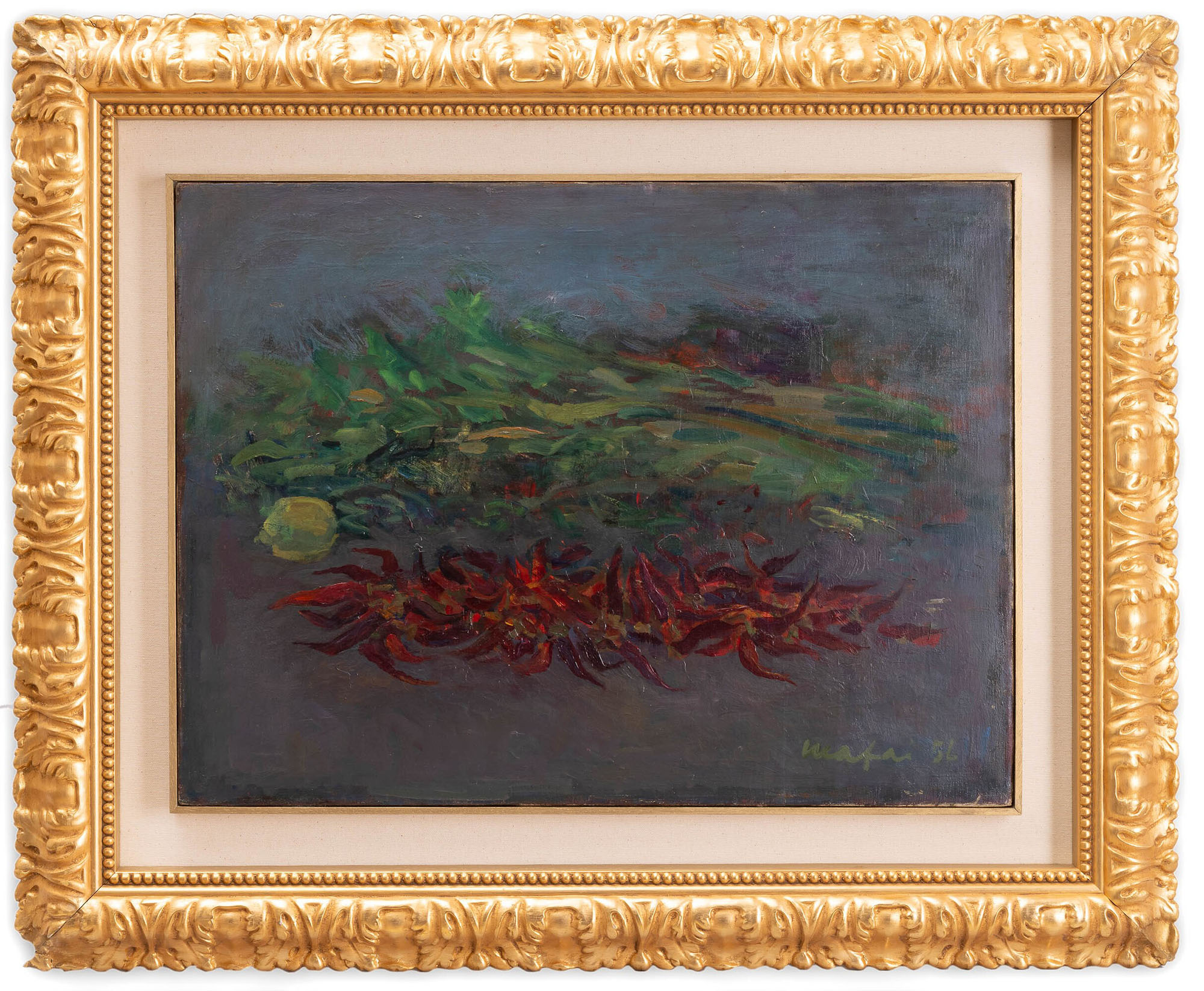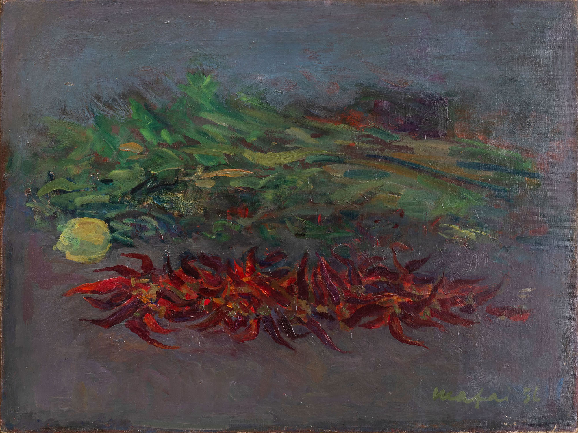 Mario Mafai 1902 Roma-1965 Roma Natura morta con peperoncini, 1956 olio su...