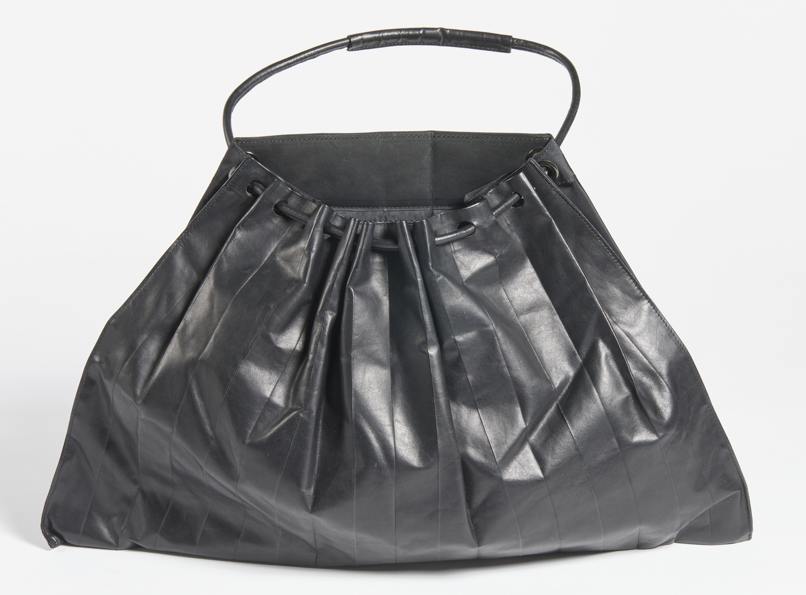 Borsa nera plissettata in pelle nera.