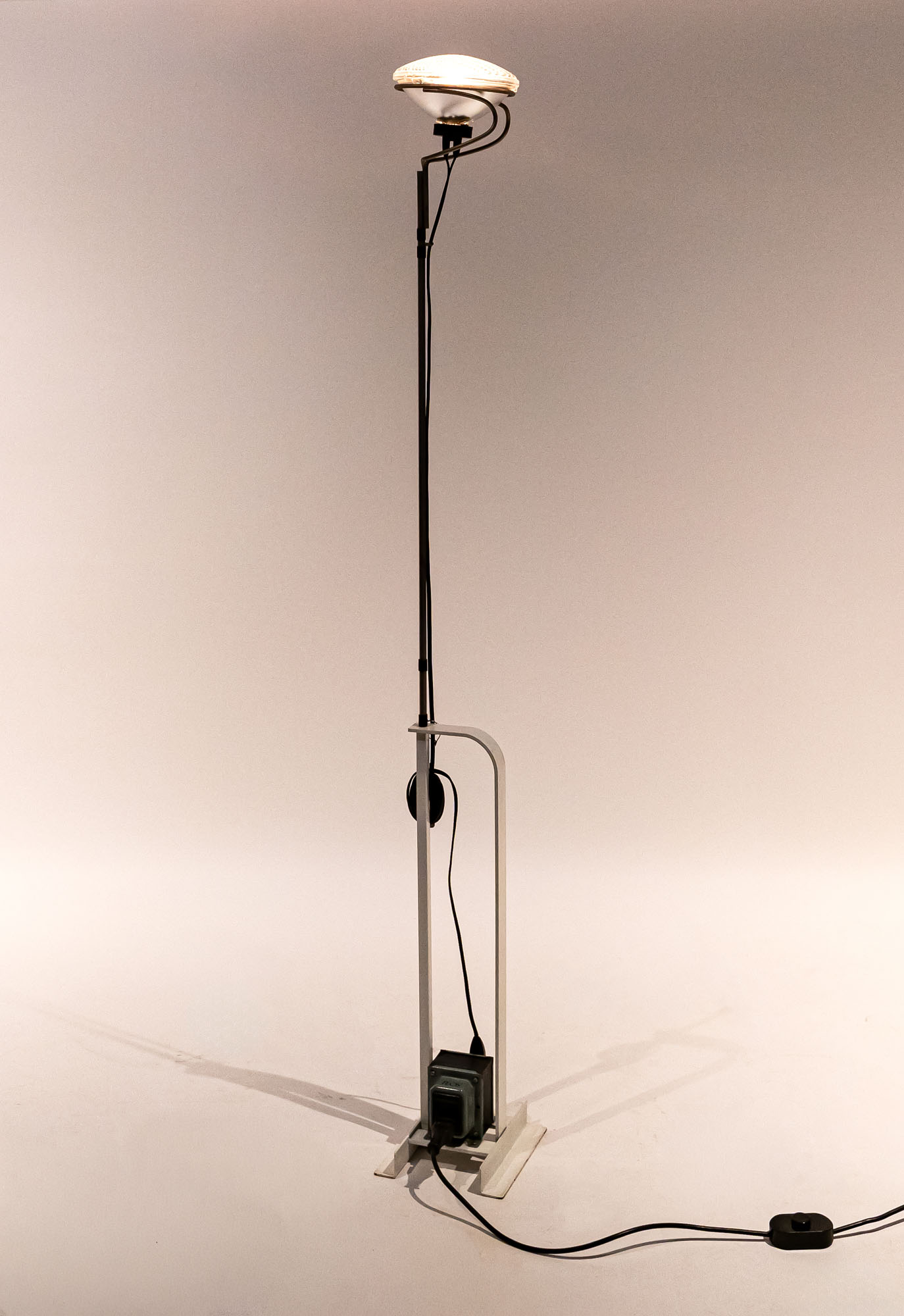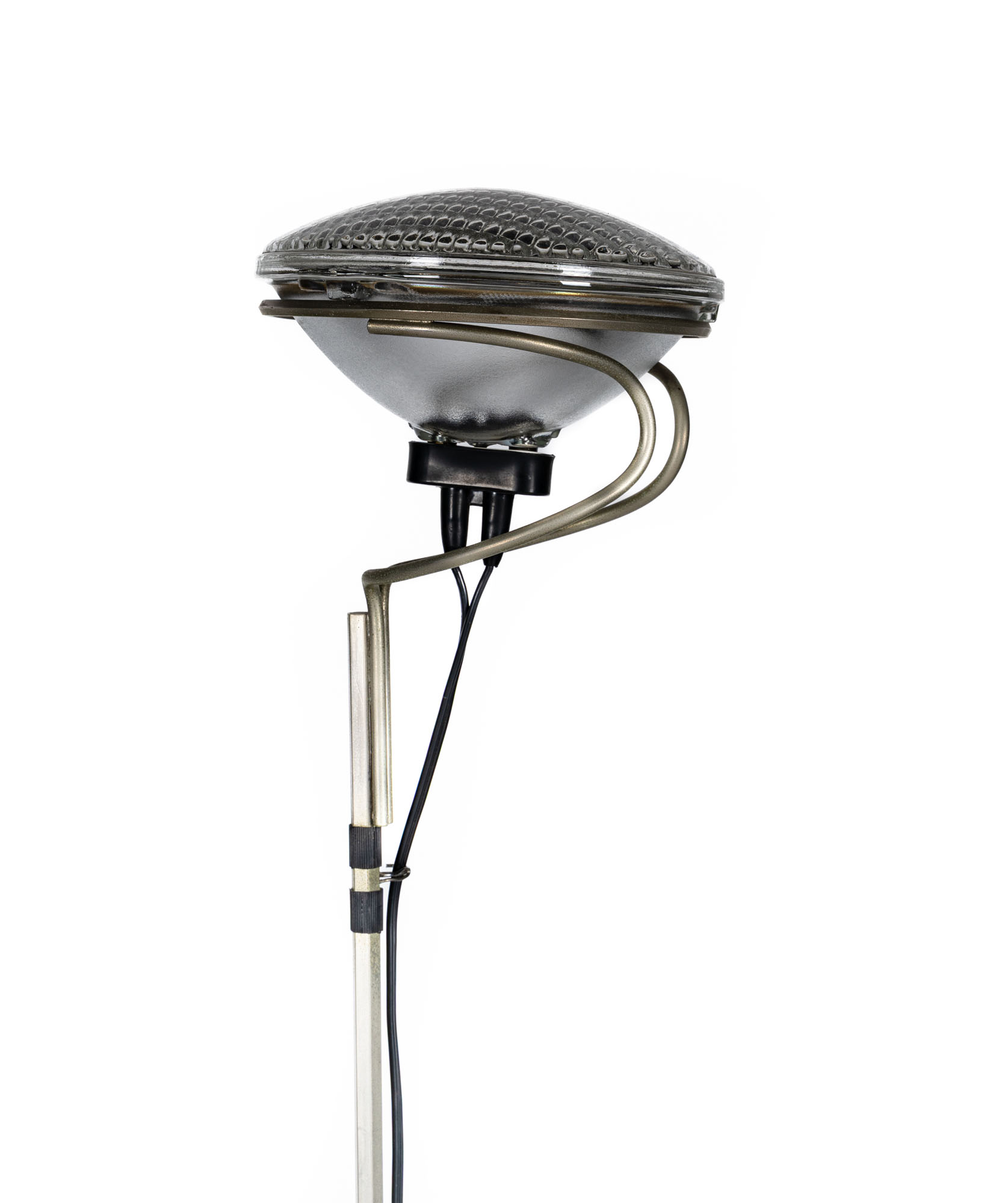 ACHILLE E PIER GIACOMO CASTIGLIONILampada da terra 'Toio'Lampada da terra che utilizza un fanale d'automobile da 300 W, importato, montato su struttura regolabile con stelo telescopico e base metallica che integra il trasformatore, produzione Flos, Italia, 1962156 x 9 x 21 cm circaPROVENIENZA:Collezione privata, TorinoBIBLIOGRAFIA:Domus n. 510, maggio 1972, pubblicitàhttps://www.moma.org/collection/works/3870