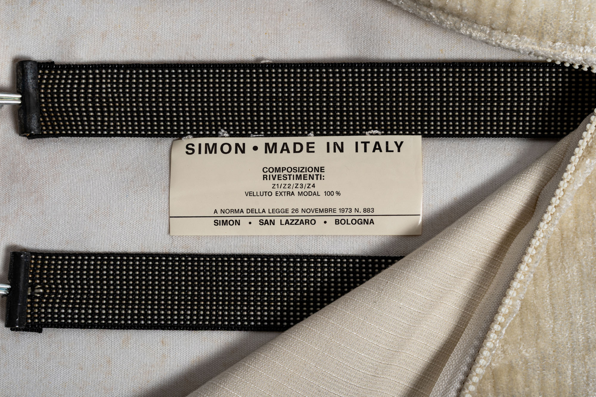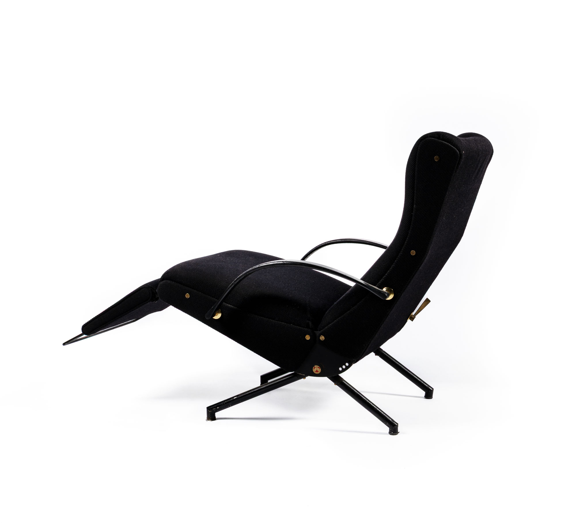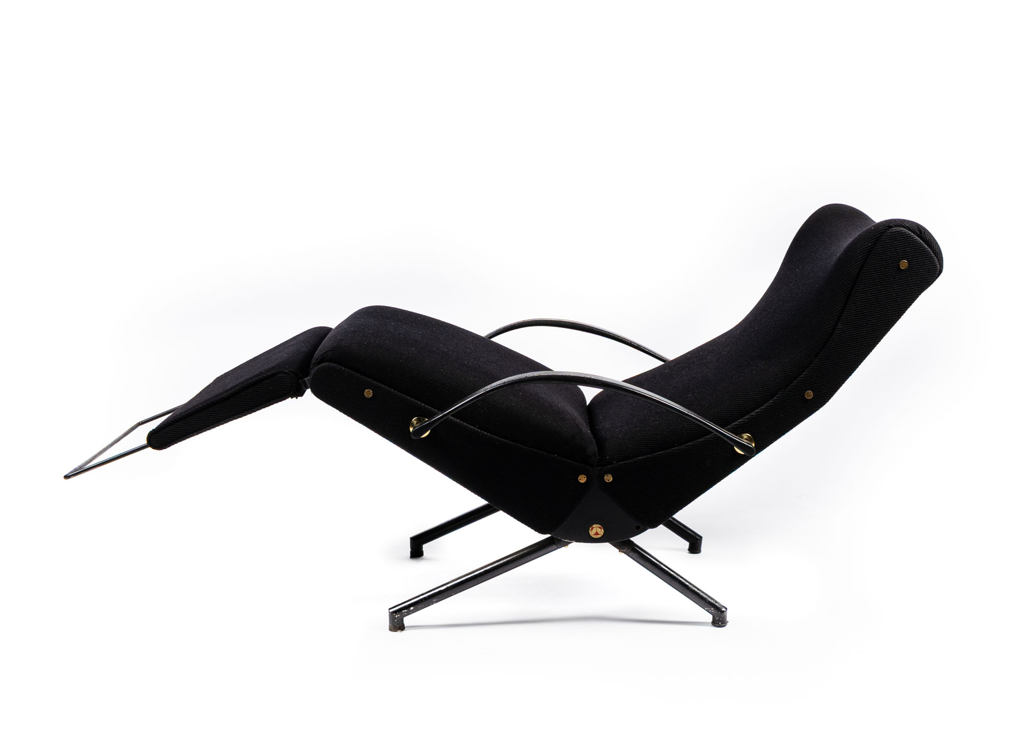 Poltrona regolabile con struttura in metallo laccato, imbottitura su nastri elastici e rivestimento in tessuto. Esemplare della prima serie con gambe a sezione tonda e senza poggiatesta allungabile, produzione Tecno, Italia, 1955