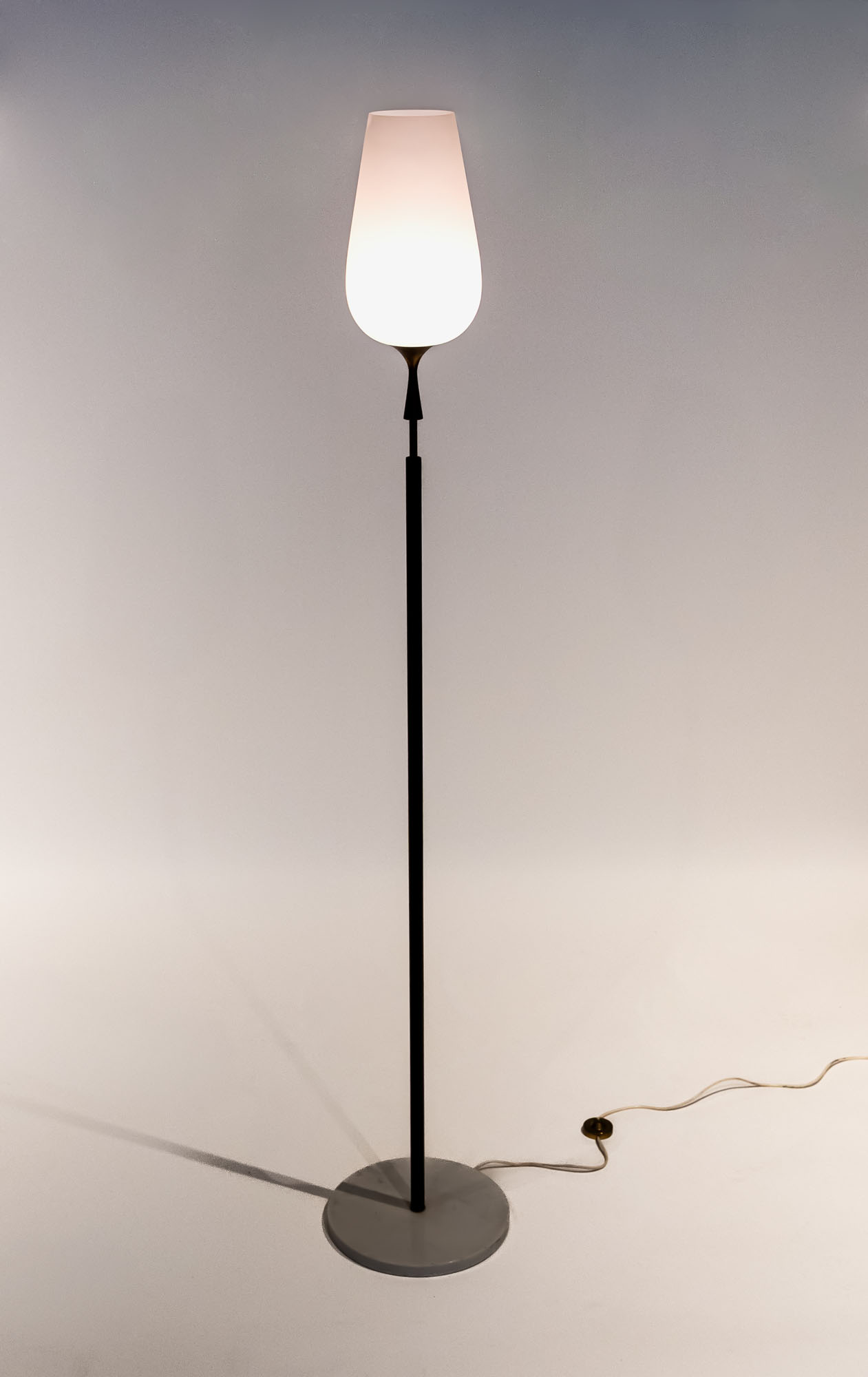 ARREDOLUCELampada da terraStruttura in metallo laccato e ottone con diffusore in vetro opalino e satinato; base in marmo, produzione Arredoluce, Monza, Italia, 1956190 x 20 x 20 cm circaPROVENIENZA:Collezione privata, MilanoBIBLIOGRAFIA:A. Pansera, A. Padoan, A. Palmaghini, Arredoluce. Catalogo ragionato 1943-1987, Silvana Editoriale, Milano 2018, scheda 129, p. 301.