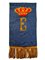 Fascia di seta marezzata azzurra con monogramma della regina Elena in canottiglia dorata e inserti di seta, in ottimo stato.