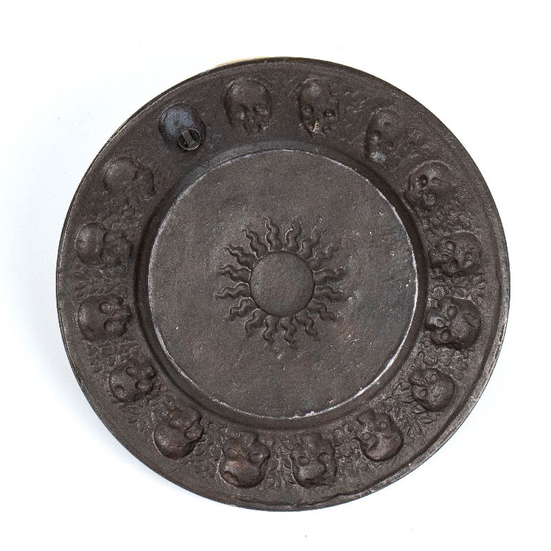 Piatto in peltro con decorazioni di teschi riportanti il numero di caduti per ogni nazione belligerante nella Grande Guerra, questo piatto era venduto per la raccolta fondi per la fusione della Campana di Rovereto. Molto bello e significativo.