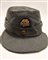 In cordellino grigio, bottone frontale in fibra con finto paraorecchie, interno in raso di cotone grigio a spina di pesce, con fregio frontale in forma di teschio ricamato di cotone bianco ed aquila laterale. In ottimo stato e molto rara.