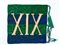In tessuto grezzo, probabilmente lino, a 4 sezioni orizzontali alternate verde e blu. Cifre XIX applicate a cucitura a mano.
