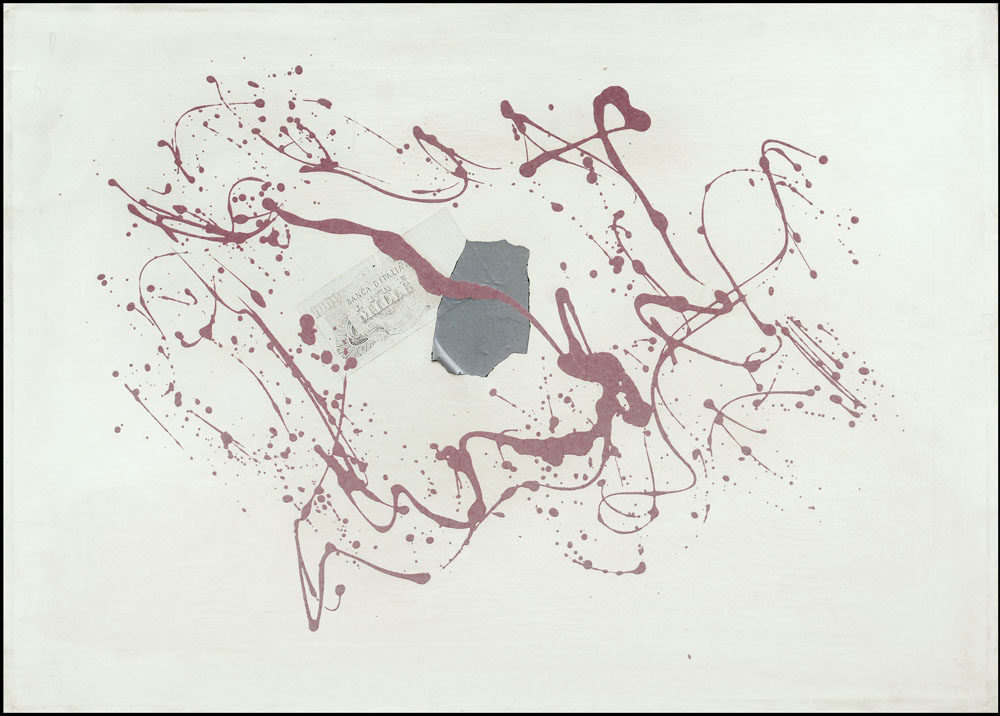 olio e collage su tela cm. 50x70, firma quasi illeggibile in basso a destra, firma, archivio ed etichetta dello Studio d'Arte AS Anna D'Ascanio (Roma) al retro, dichiarazione d'autenticità e archivio dell'artista su 2 foto, e-mail allegata di conferma dell'archiviazione a cura di Ettore Caruso.