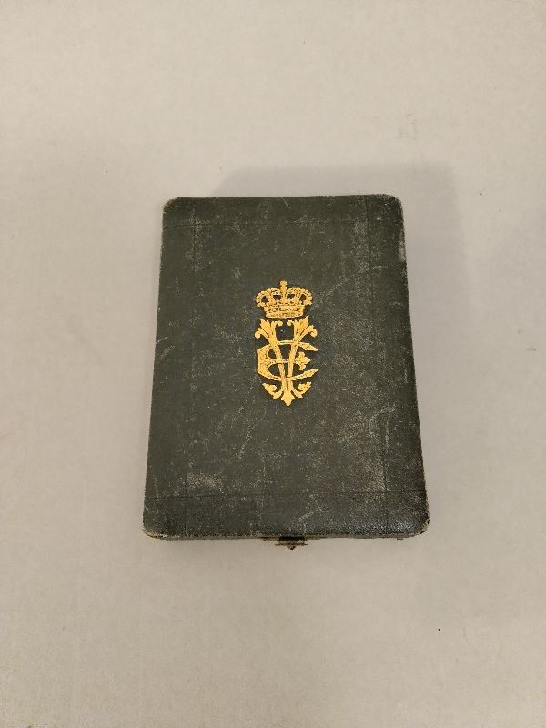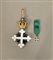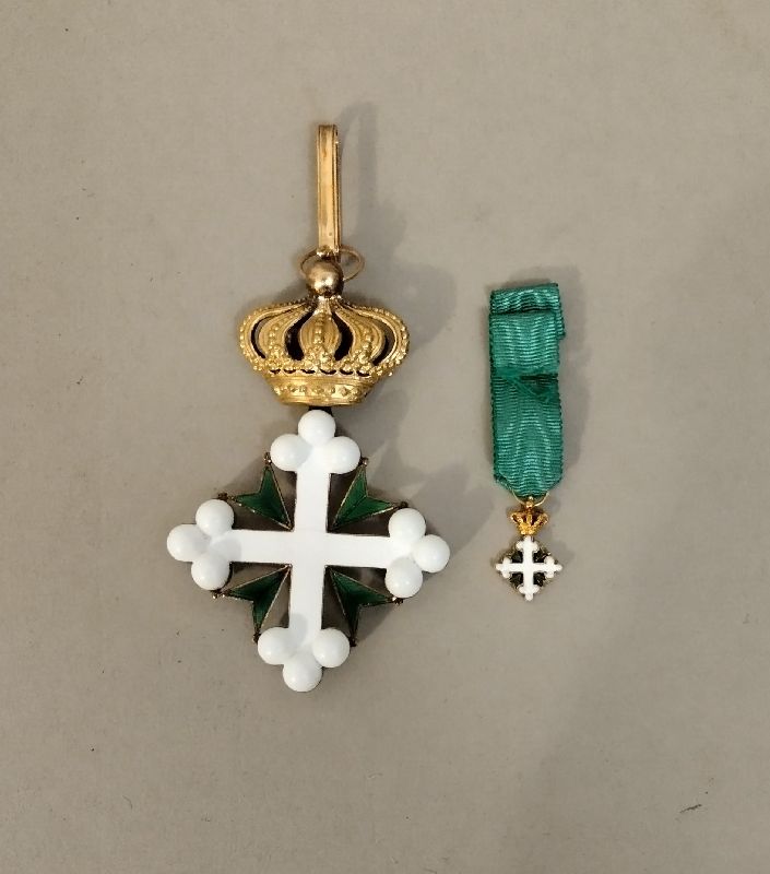 Croce di Commendatore in oro e smalti policromi, ottima fatture di inizio secolo, nastro di seta marezzata verde, smalti integri e privi di difetti, conservata in astuccio.