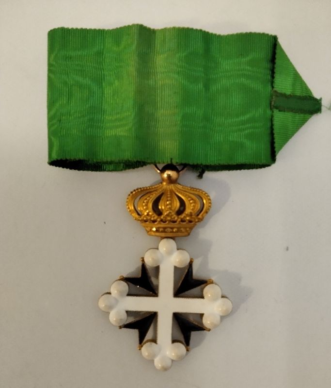 Bellissima Insegna in oro e smalti policromi, nastro di seta, smalti integri. Ottimo stato ed ottima fattura. Peso totale, escluso nastro, 30 grammi.
