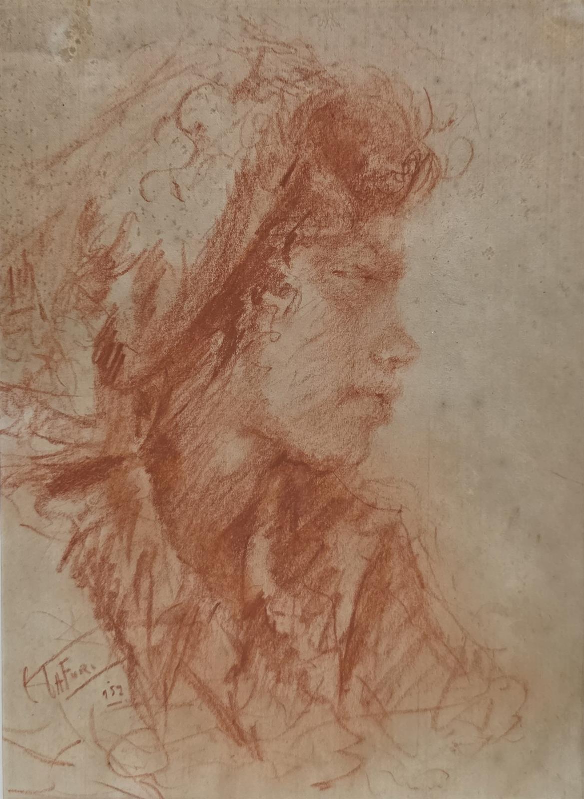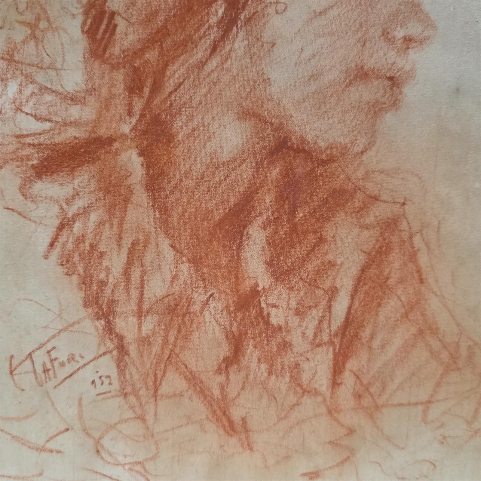 Clemente Tafuri (Salerno 1903 -Genova 1971) Misure: cm.20,5 x 26,5 Disegno sanguigna su carta raffigurante popolana. Firma in basso a sinistra C.Tafuri '952.