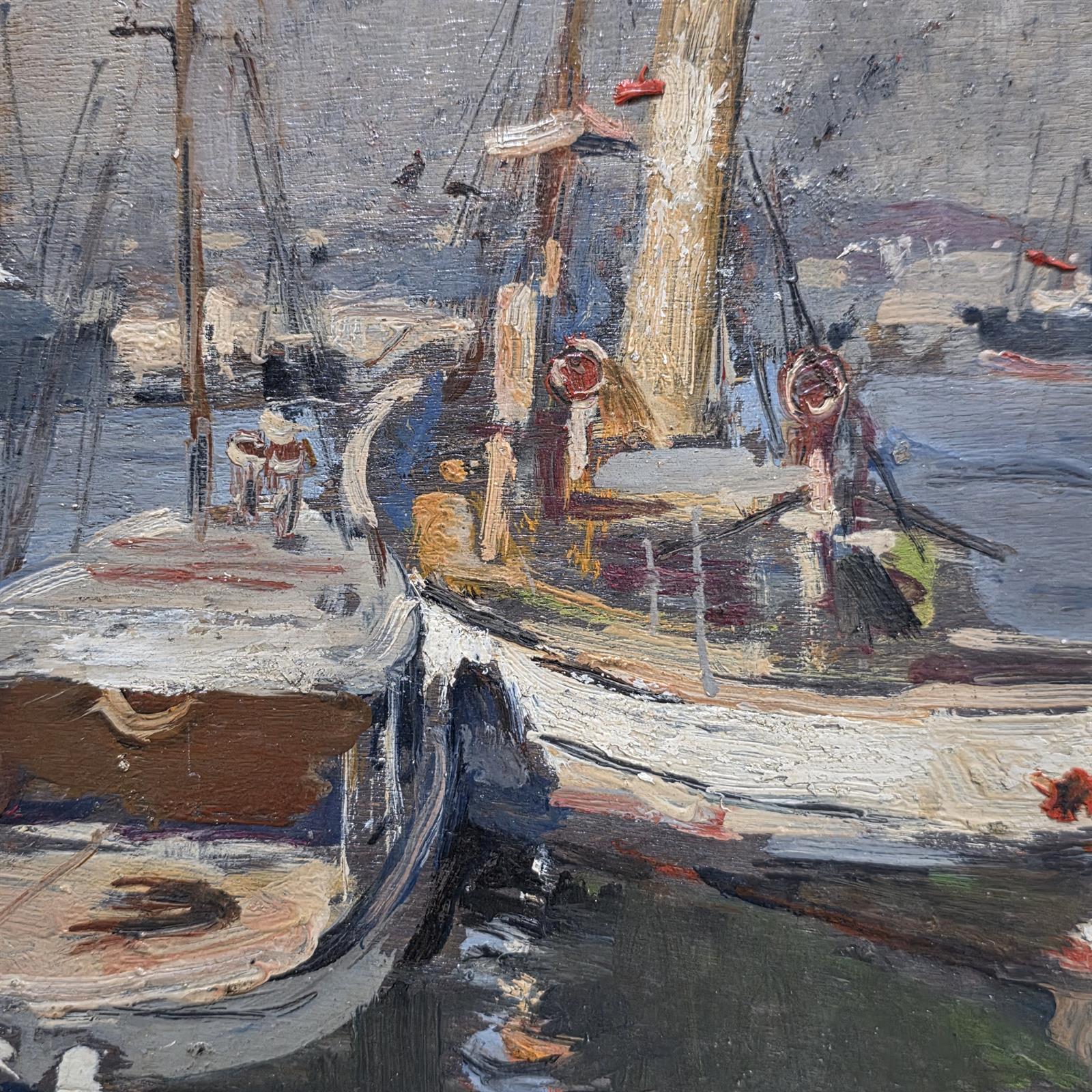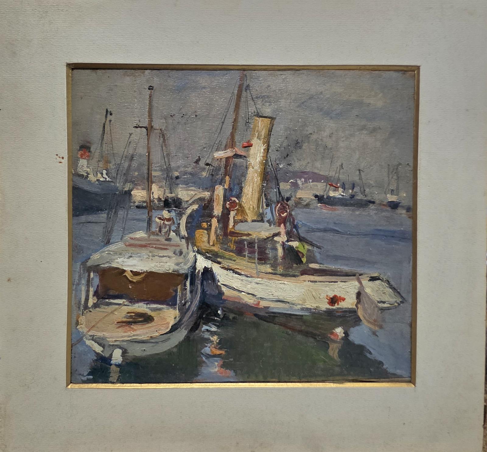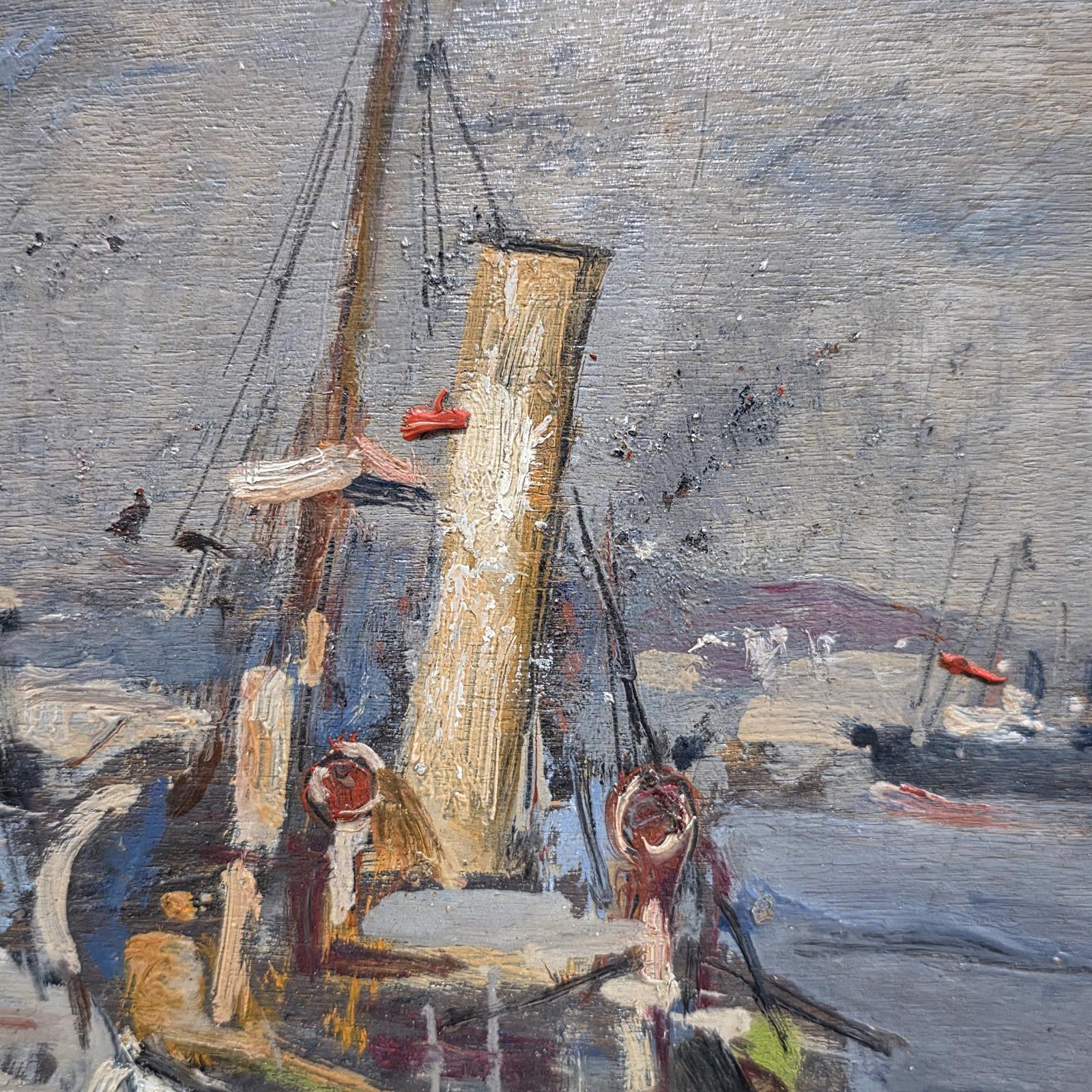Gennaro Villani (Napoli 1885- Milano 1948) Misure: cm.24 x 26 Olio su pannello Barche a Napoli Firma in basso a sinistra G.Villani.