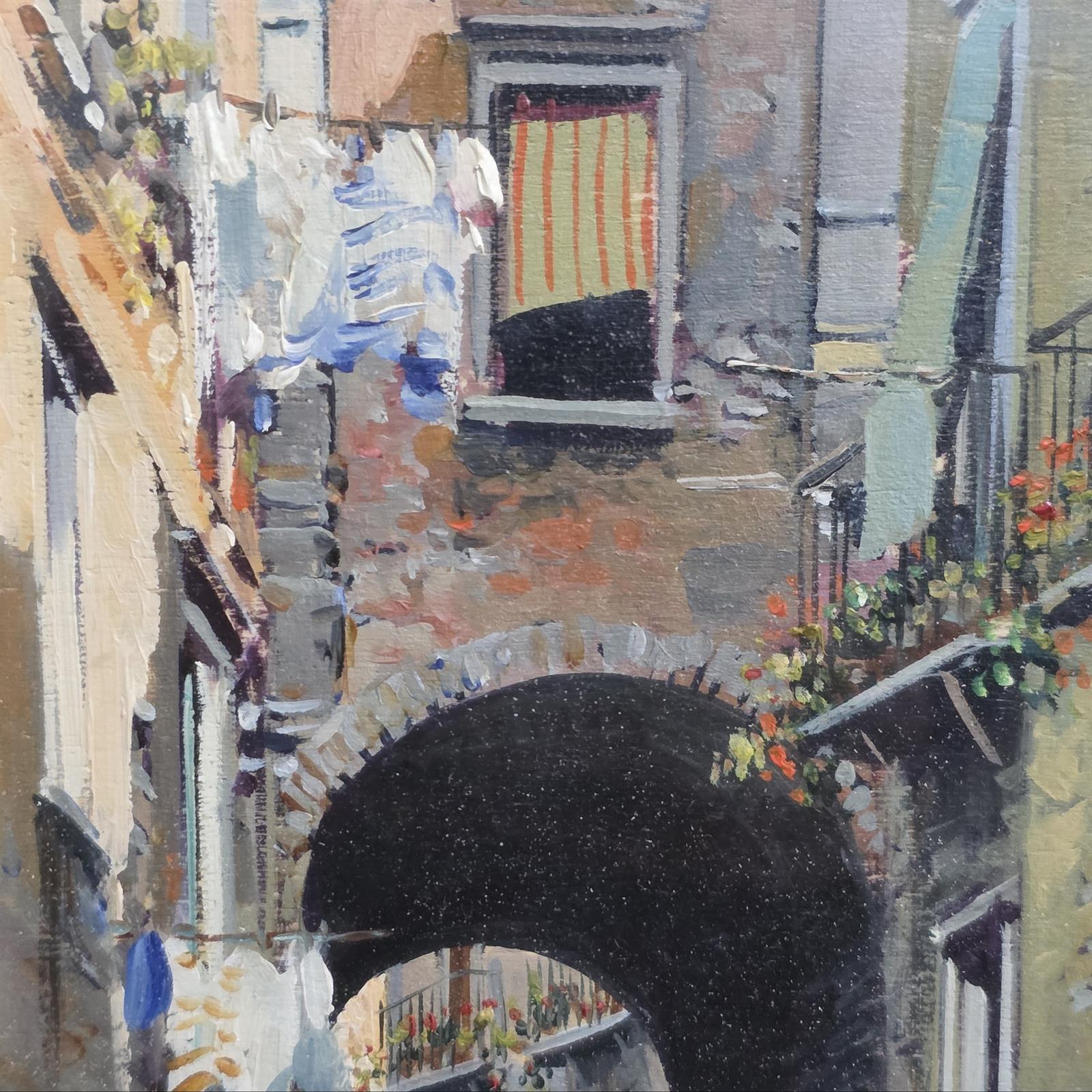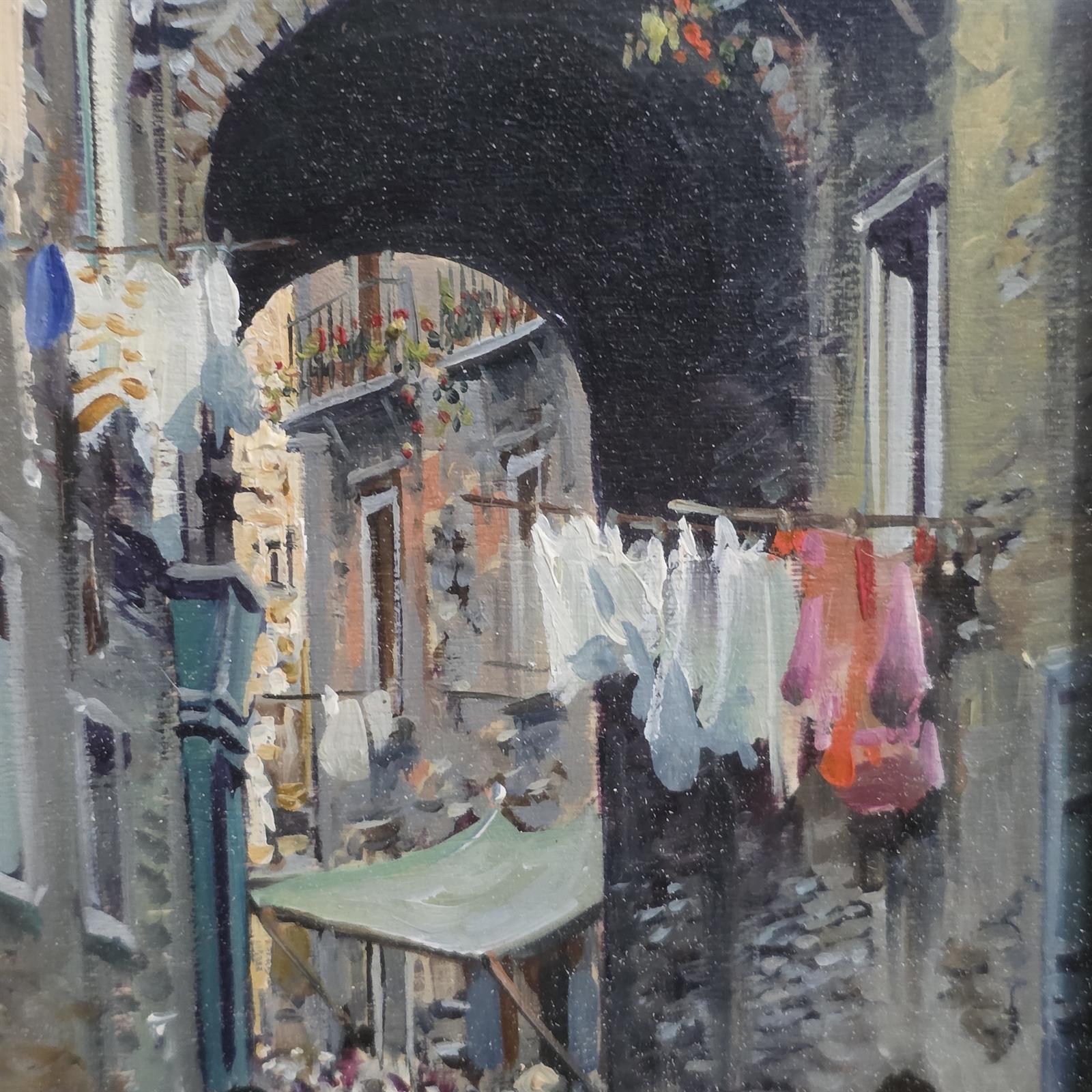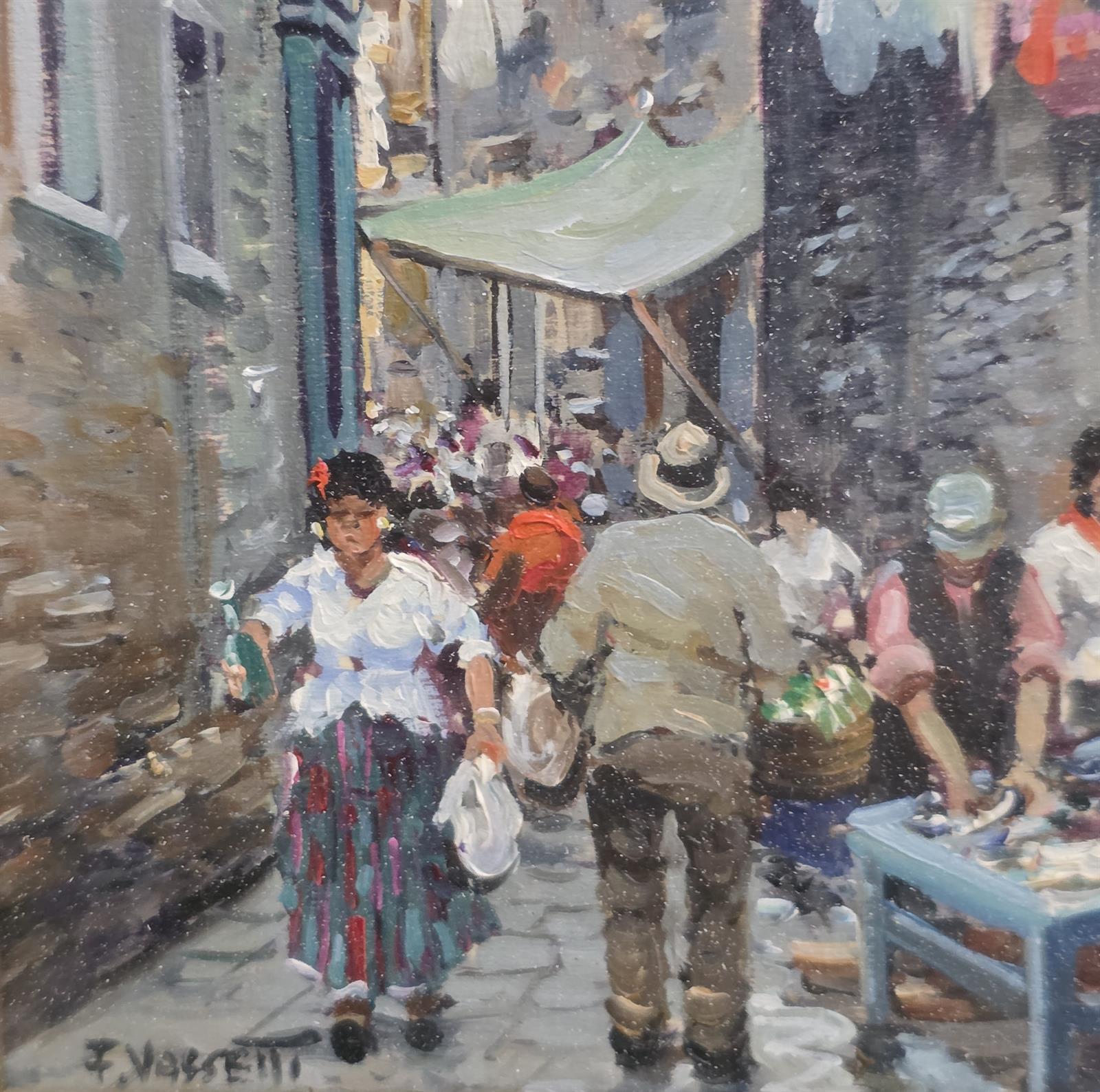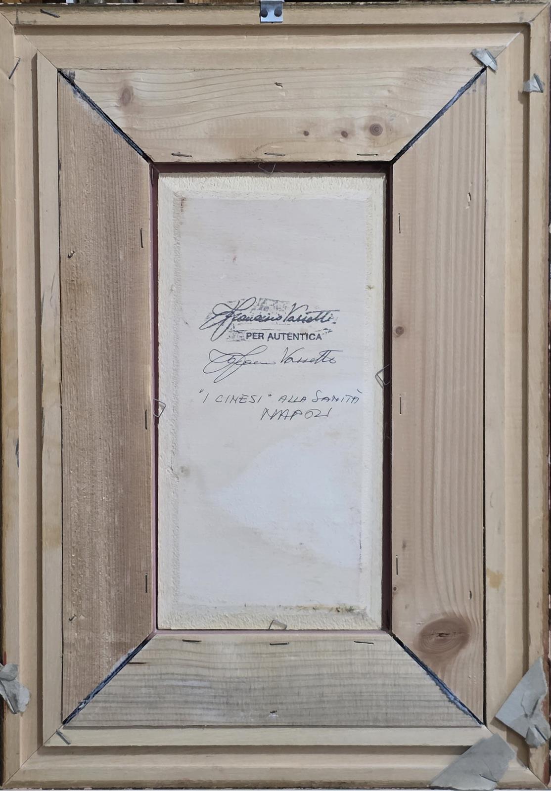 Francesco Vassetti (Napoli 1936-2020) Misure: cm.15 x 30 senza cornice Misure: cm.36 x 51 con cornice Olio su pannello Titolo: "I cinesi " alla Sanità, Napoli Firma in basso a sinistra F.Vassetti