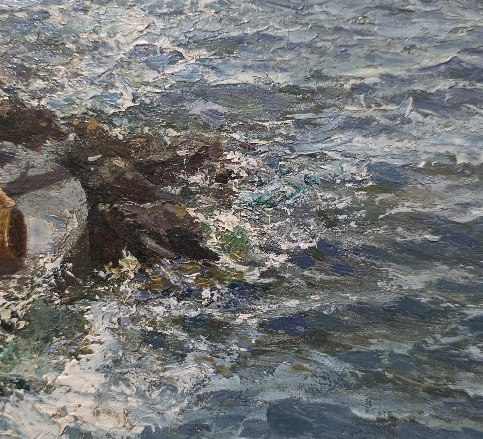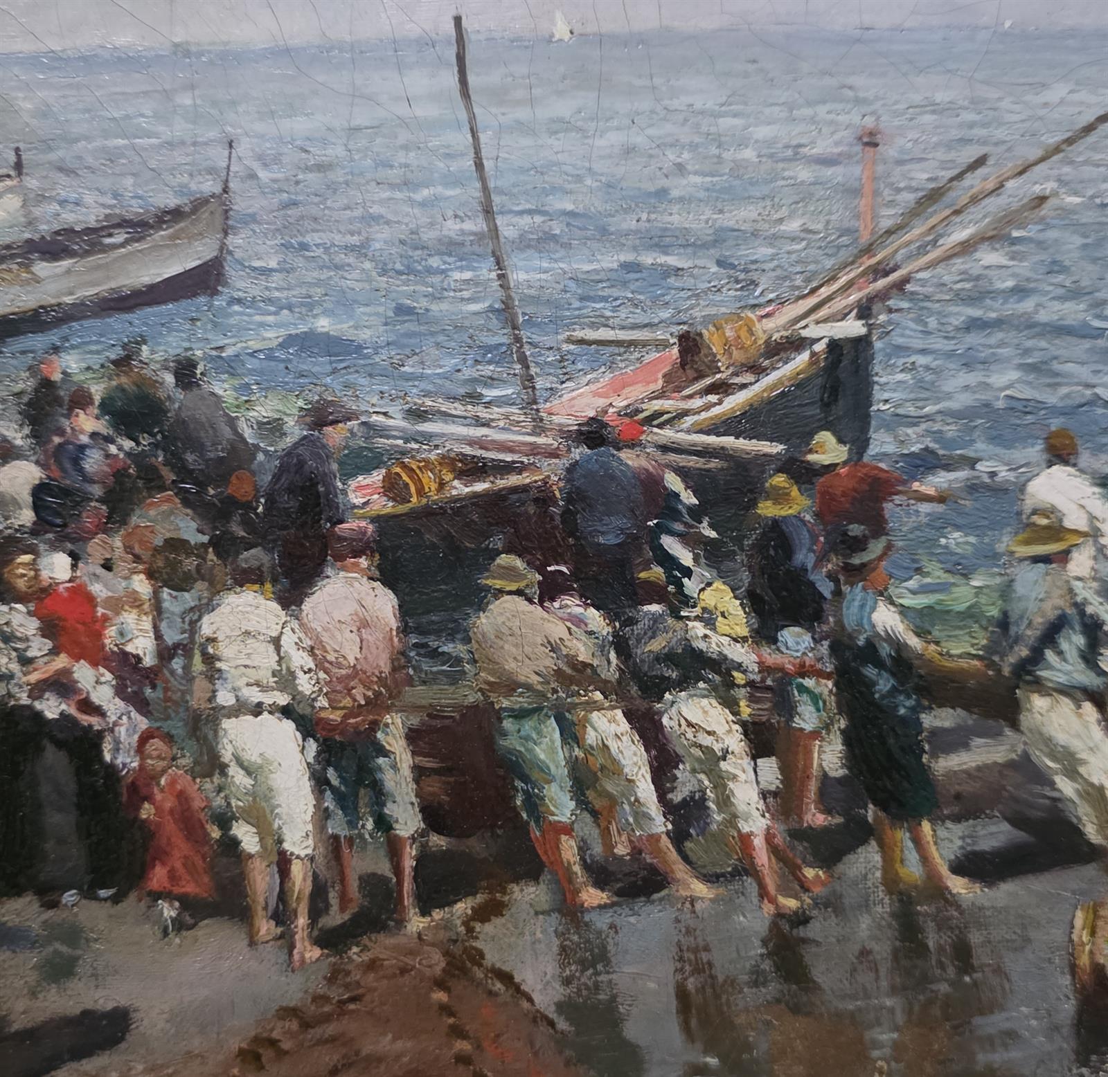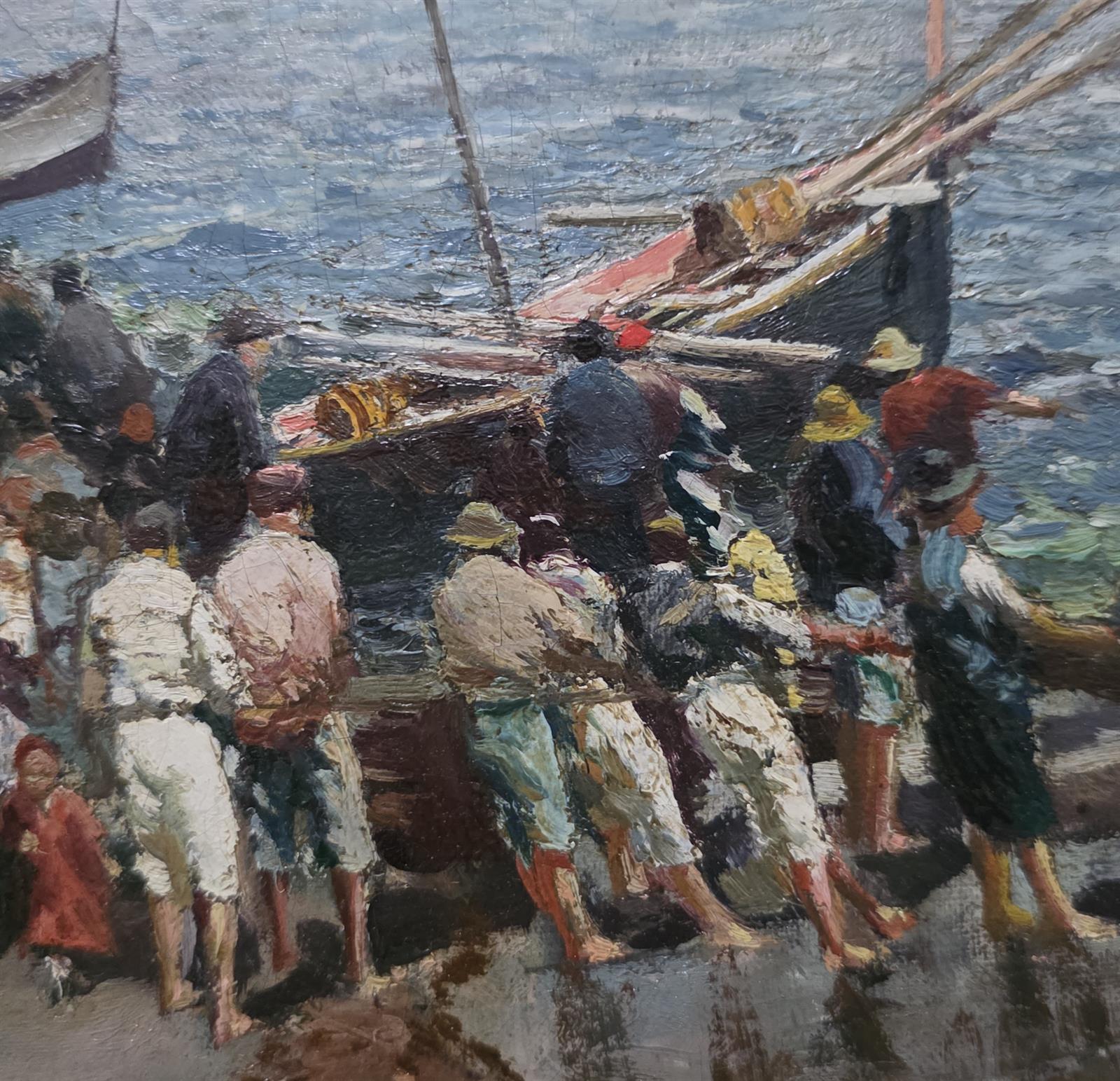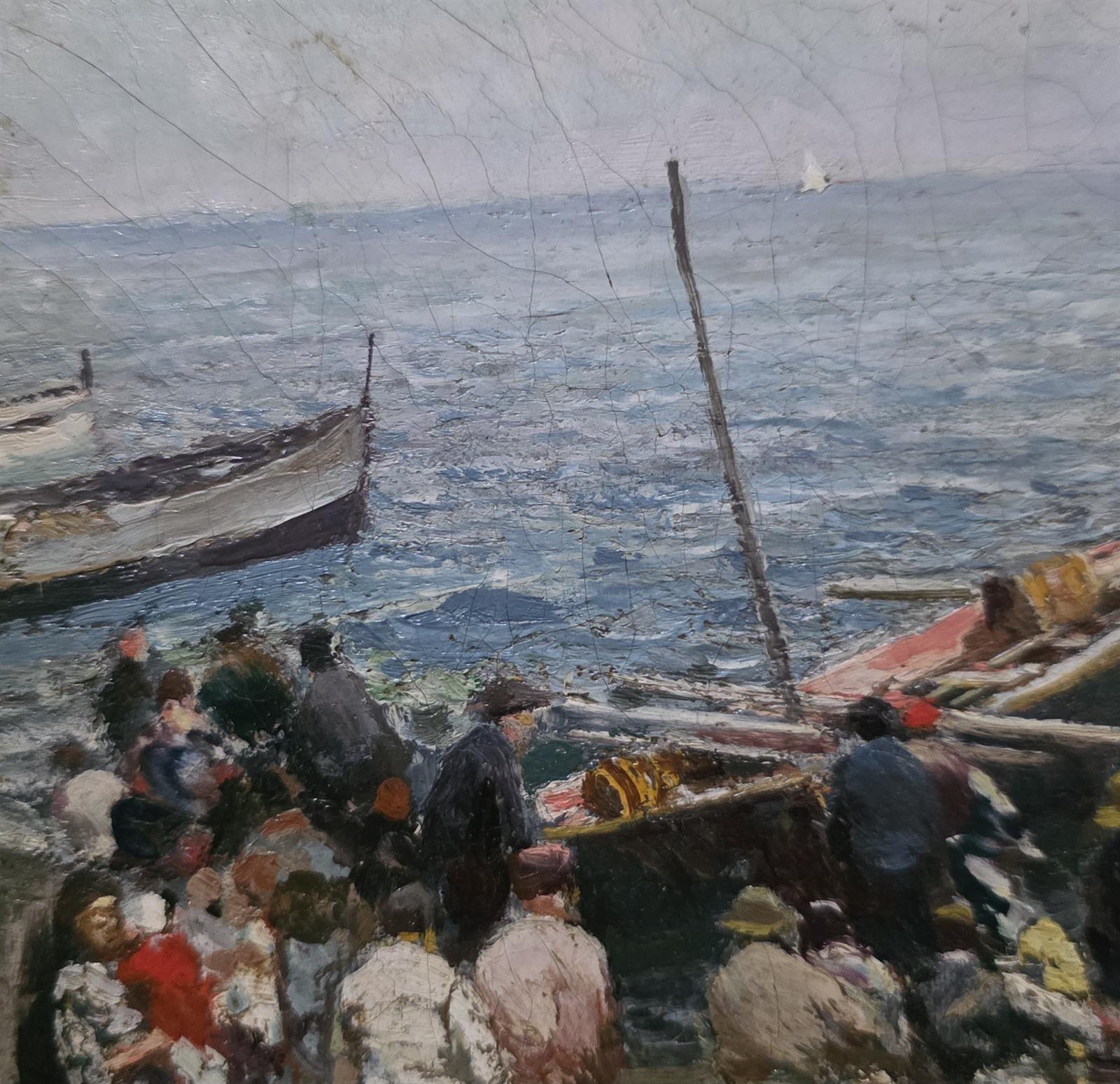 Attilio Pratella ( Lugo 1856- Napoli 1949) Olio su tela Marina di Napoli con barche e pescatori Cm.30 x 50 Firma in basso a sinistra A.Pratella