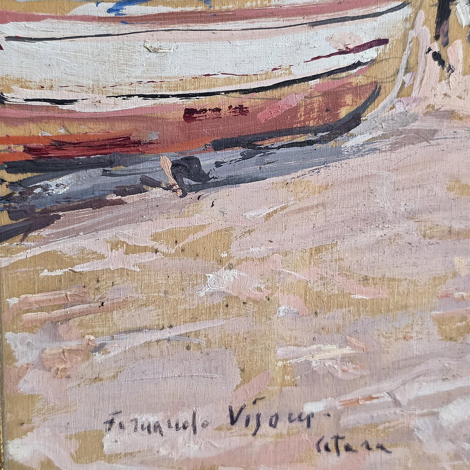Fernando Visone (Pozzuoli 1938-2018) Olio su pannello Cetara Firma in basso a sinistra Fernando Visone, Cetara. Cm.40 x 50 Cm.60 x 70