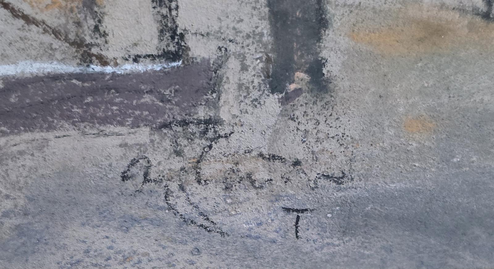 Giuseppe Casciaro (Ortelle 1863- Napoli 1941) Pastello su carta Scorcio di paese con figure Firma in basso a sinistra Casciaro Cm.20 x 27 Cm.34 x 43 con cornice