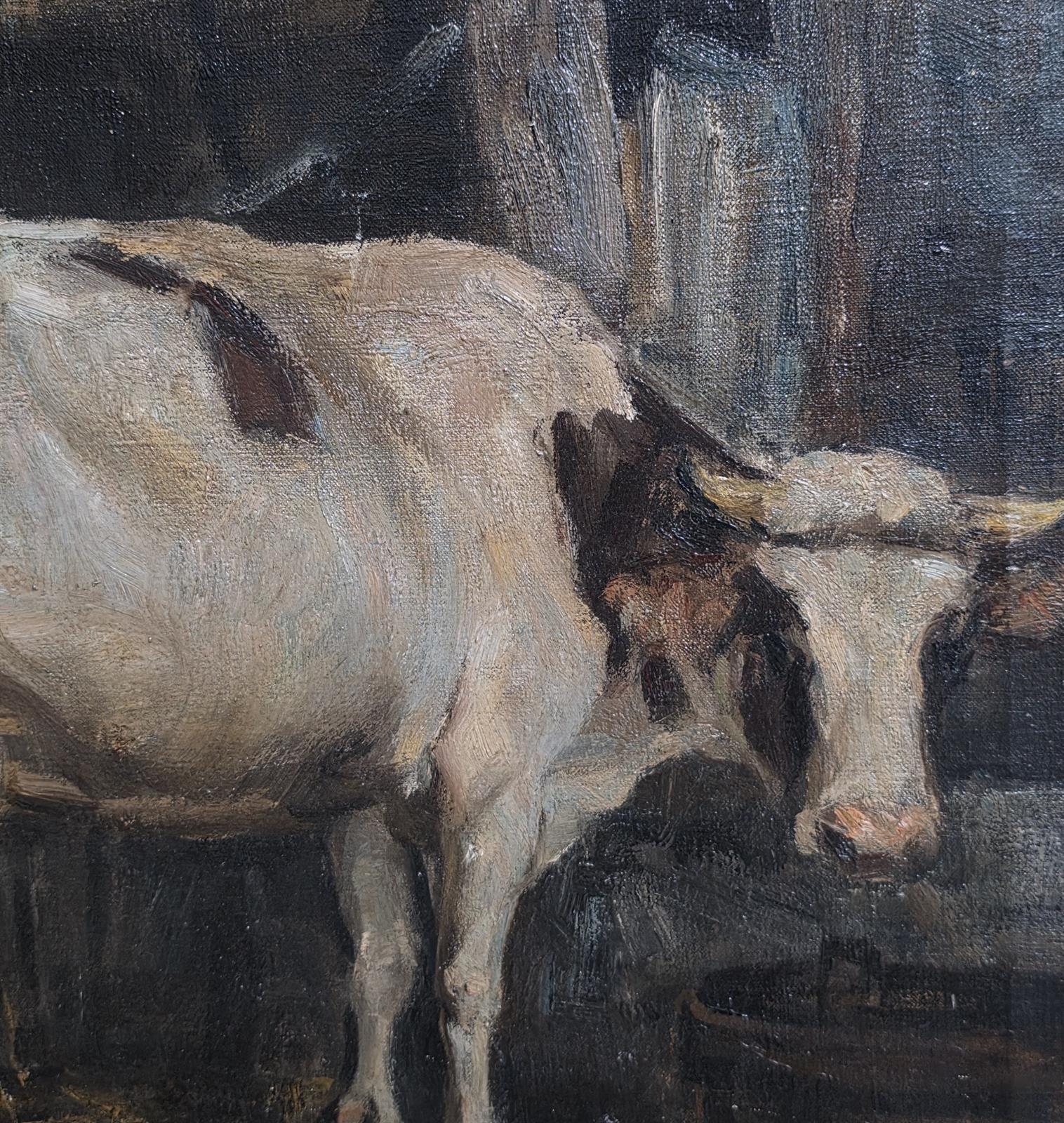 Renato Passaro ( Napoli 1910-1970) Olio su tela Mucca in stalla Firma in basso a destra R. Passaro Cm.55 x 65
