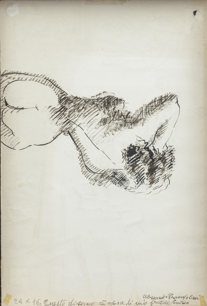 Disegnato da ambo le parti. Al retro, autentica del fratello dell'Artista e misure "Questo disegno è opera di mio fratello Enrico - Alessandro Prampolini".In cornice