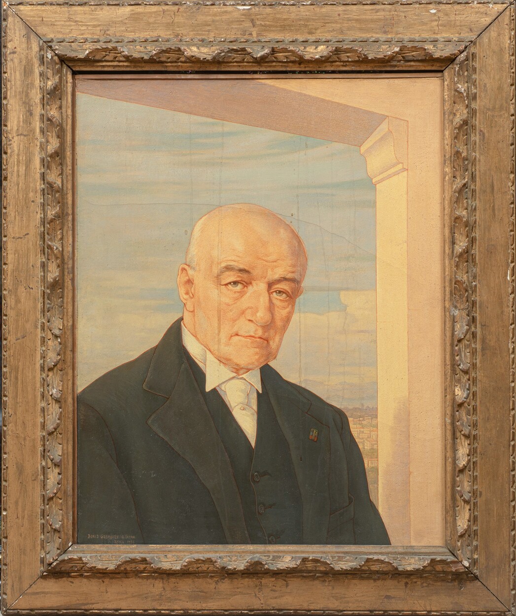 Boris Georgiev di Varna (1888 - 1962) Ritratto del senatore Simonetta 1934 tempera su faesite 64 x 51 cm