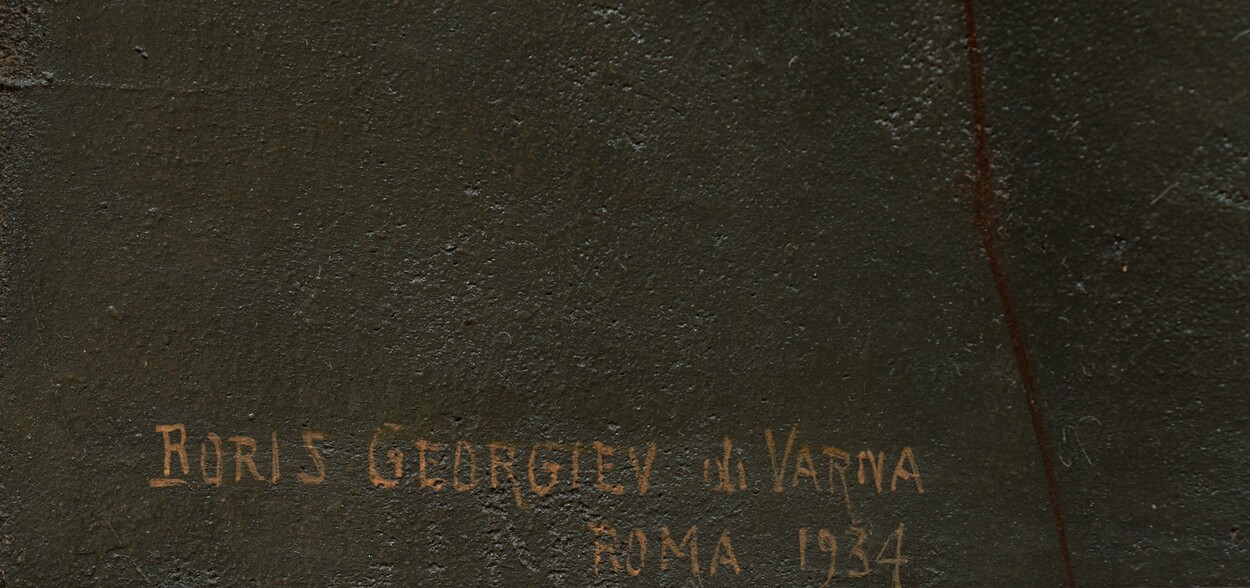 L'opera è firmata, situata e datata in basso a sinistra: "Boris Georgiev di Varna Roma, 1934". Al retro recante etichetta della "XXIII Biennale Internazionale d'Arte di Venezia, 1942 XX". In cornice. Il dottor Simonetta (1861 - 1934), medico, fu nominato Senatore della Repubblica nel 1924. Nel 1934, anno in cui venne esegeuito il ritratto, ottenne la nomina di Questore, che probabilmente volle celebrare con questo dipinto.