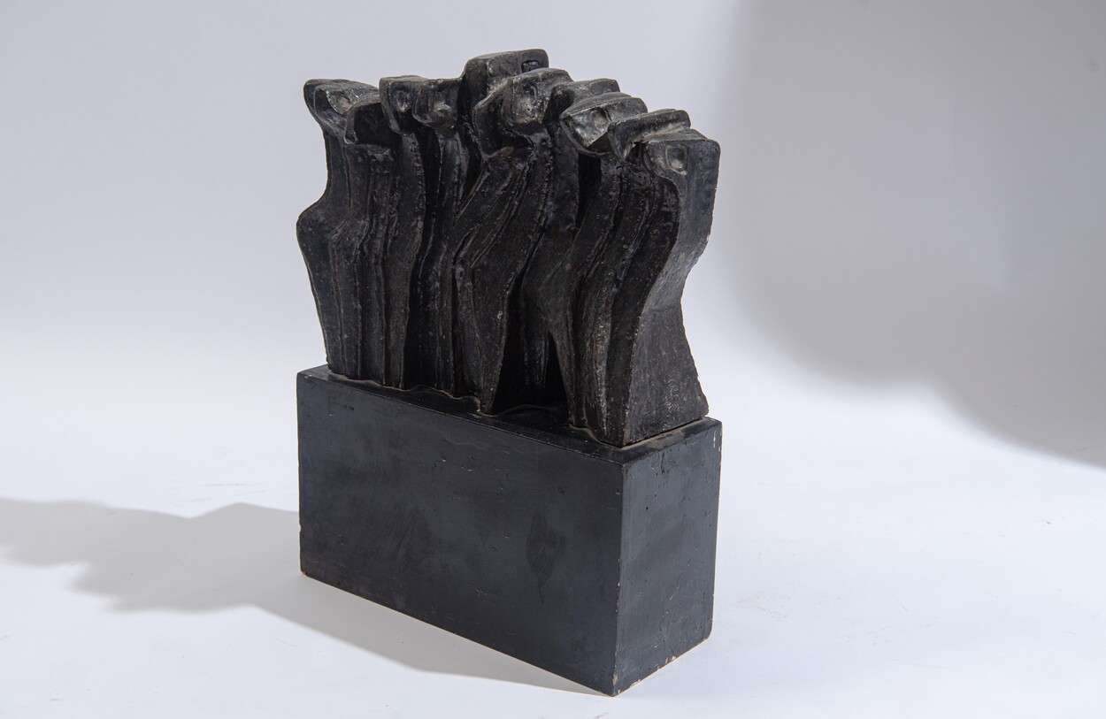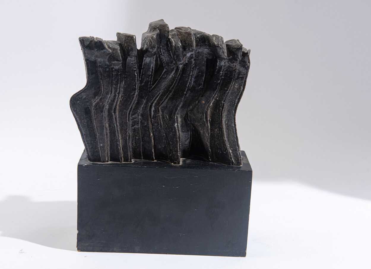 Base in legno, dimensioni: 18 x 33 x 13 cm. Firma al retro