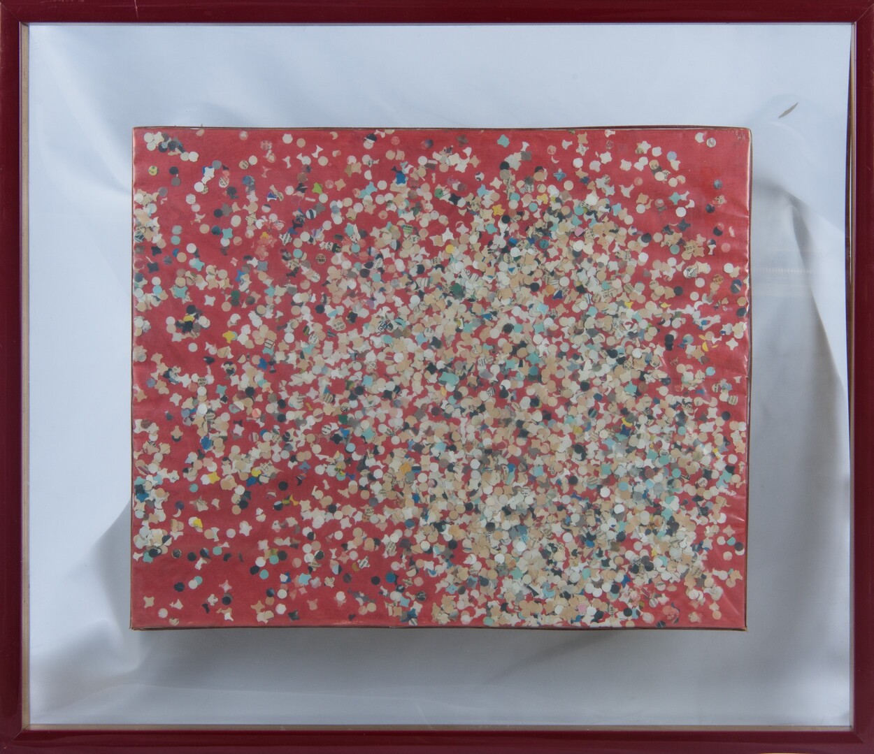 Tano Festa (1938 - 1988) Coriandoli 1983 tempera e coriandoli su tela e cellophane 50 x 40 cm