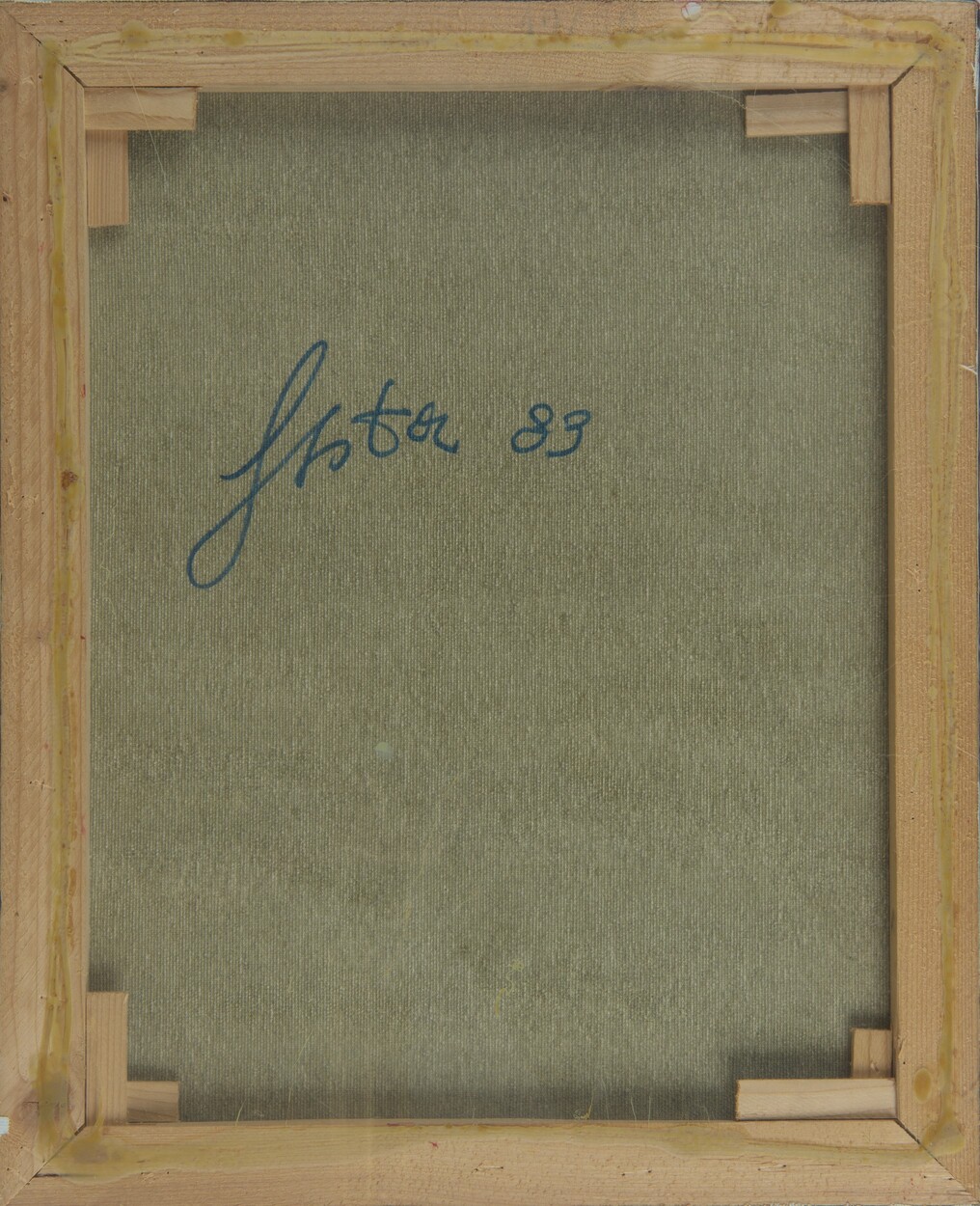 Al retro: firmato e datato "festa 83". Opera presentata con certificato di autenticità e archiviazione dell'Archivio delle Opere Tano Festa, a cura di Anita Festa, datata 11 Febbraio 2025; n. d'archivio: B3116A/2580. In cornice.