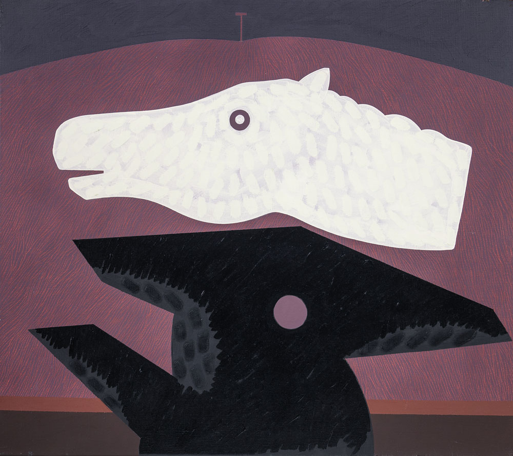 olio e acrilico su tela cm. 70x80, firma, titolo e anno al retro, dichiarazione d'autenticità dell'artista e Archivio Concetto Pozzati su foto.