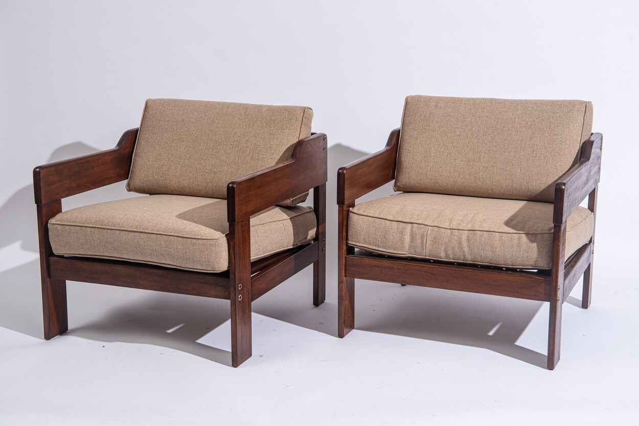 Manifattura italiana - Coppia di Manifattura italiana - Coppia di poltrone anni '60 del XX secolo legno e tessuto imbottito 75 x 69 x 70 cm