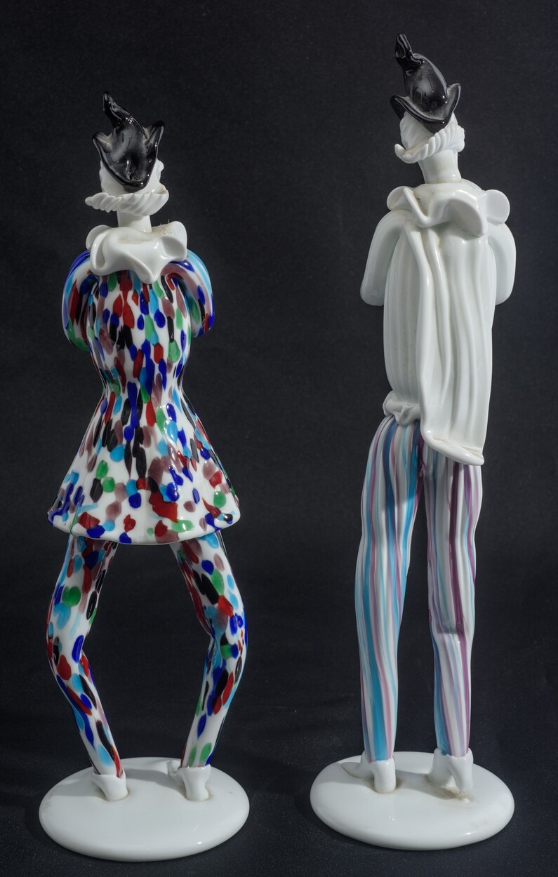 Fulvio Bianconi (1915 - 1996) Due sculture raffiguranti Pantalone e Arlecchino 1995 vetro di Murano 34 cm