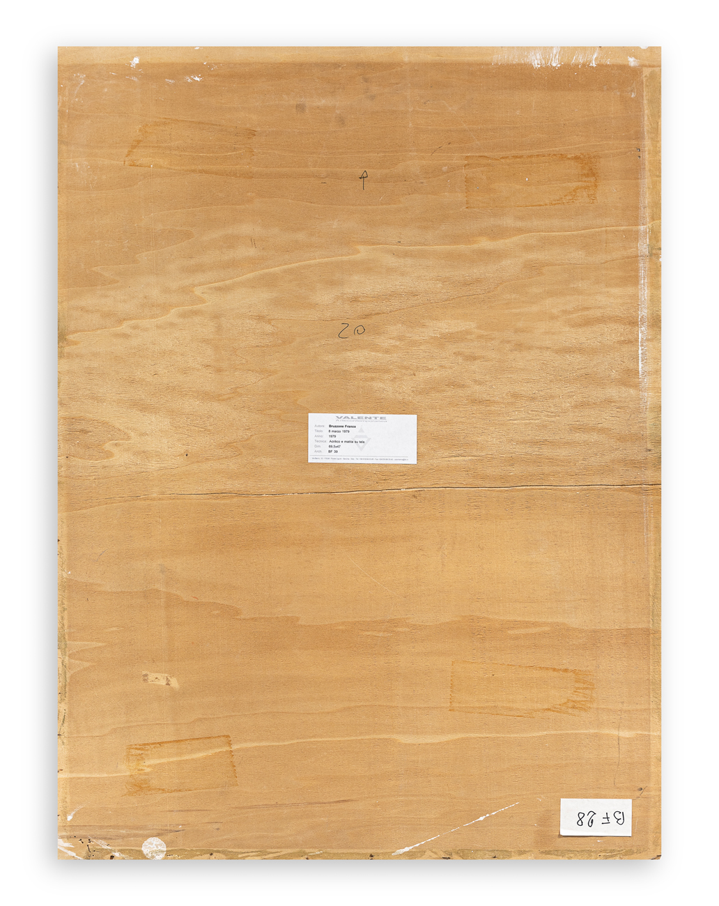 Etichetta della Galleria Valente Arte Contemporanea (SV) al retro della tela