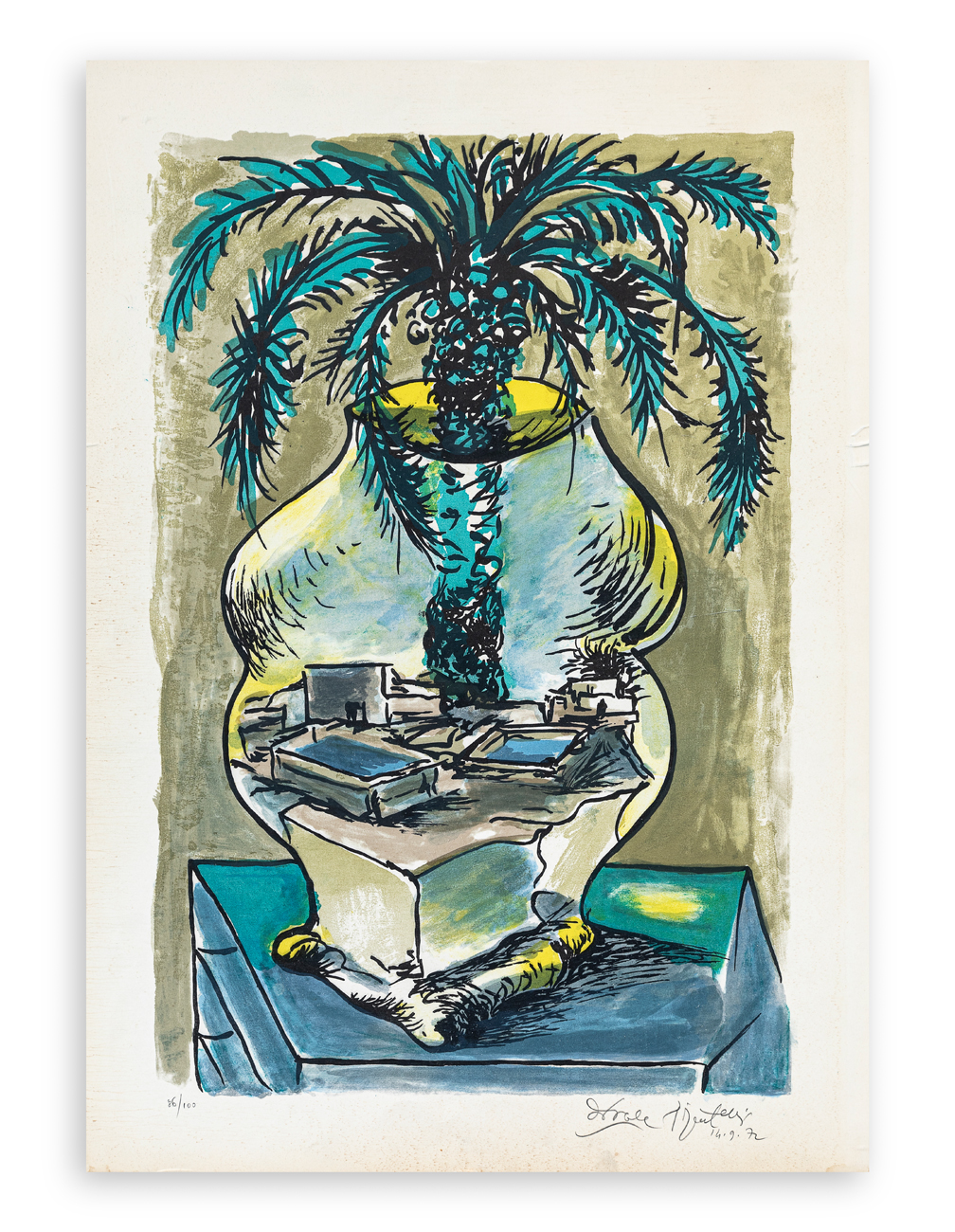 Firma, datazione e numerazione (Esemplare 86/100) a matita al fronte