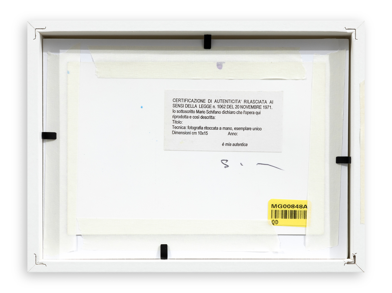 Certificato di autenticità a cura dell'Archivio Generale dell'Opera Pittorica di Mario Schifano - Fondazione Mario Schifano (RM) rilasciato in data 24/09/2007