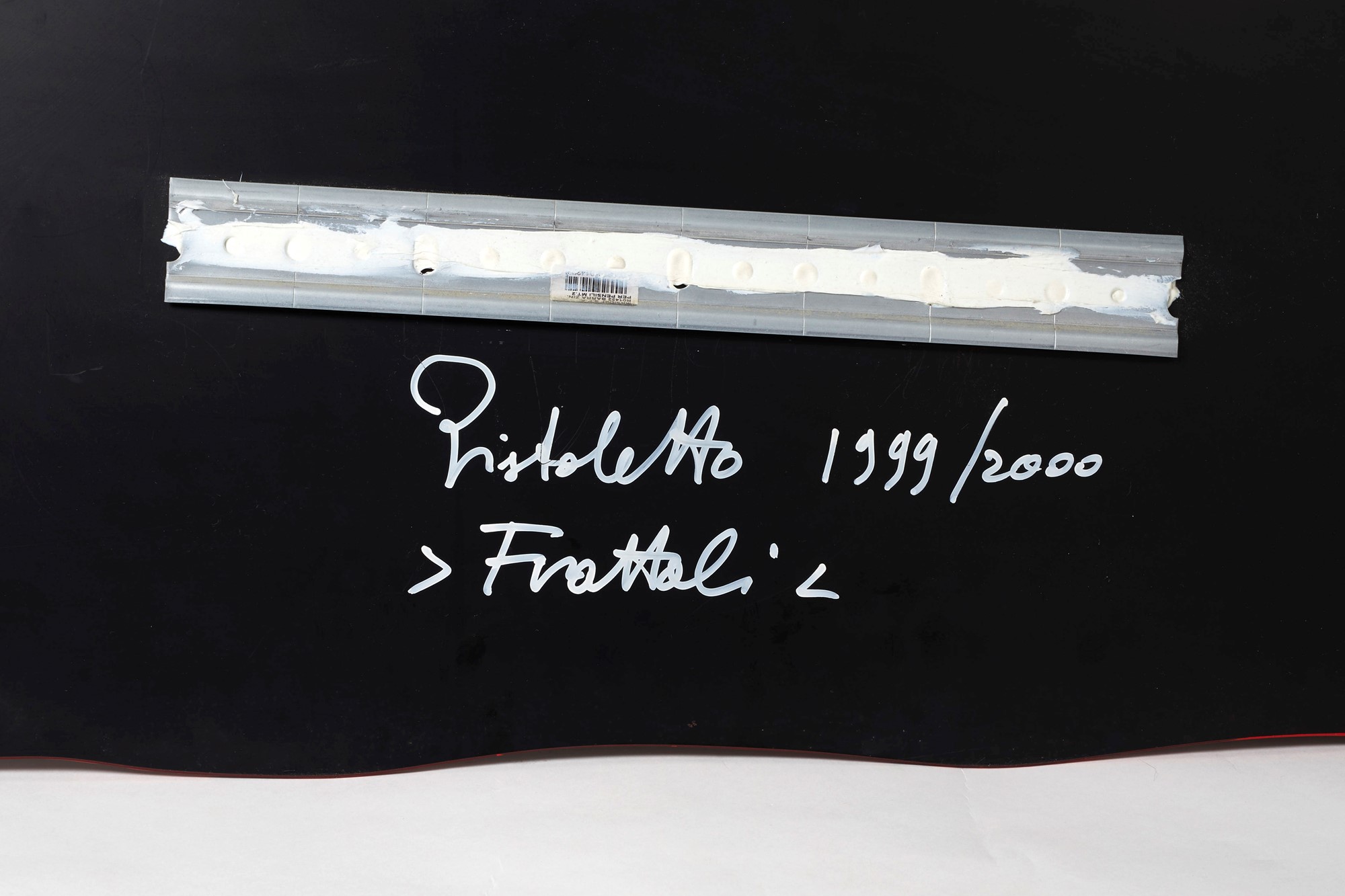 MICHELANGELO PISTOLETTO (Biella 1933) "Frattali", 1999/2000. Smalto rosso su specchio sagomato. Cm 45,5x124. Al retro opera firmata, datata e intitolata Pistoletto 1999/2000, Frattali. Opera accompagnata da autentica su fotografia a firma del maestro e timbro della Galleria Cesare Manzo.