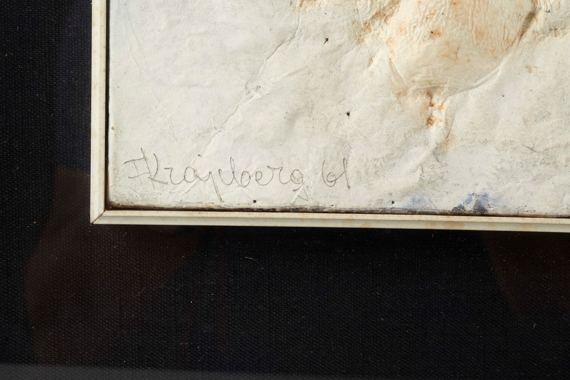 FRANS KRAJCBERG (Kozienice 1921 - Rio de Janeiro 2017) "Superficie lunare", 1961. Olio e tecnica mista su tela. Cm 59x46. Opera firmata e datata in basso a sinistra FKrajcberg 61. Al retro opera firmata e datata FKrajcberg 61. Al retro reca dedica. Al retro riporta etichetta Galleria d'arte del Naviglio, Milano.